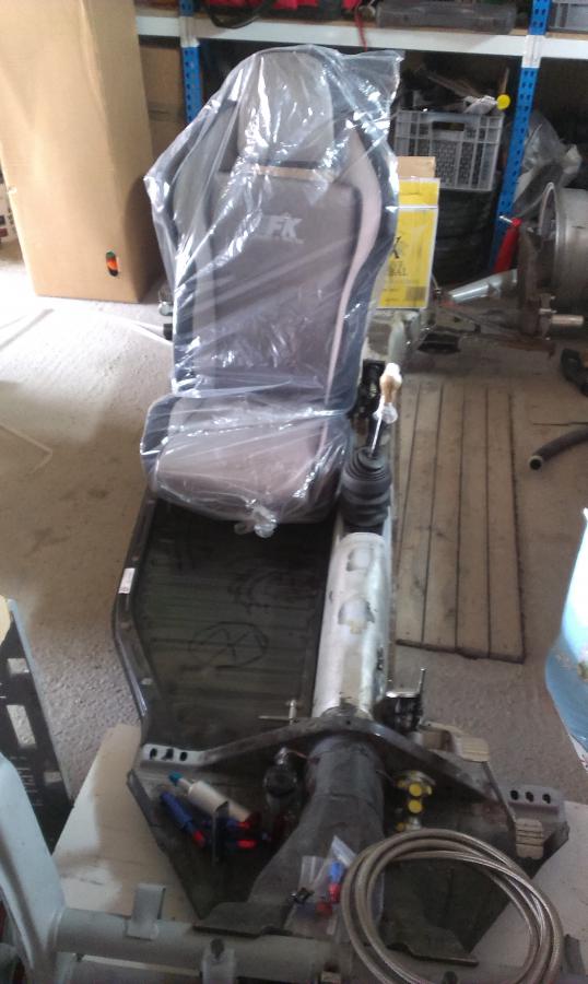 - Raccords arrières pour l'essence et l'embrayage : - Fabrication de Dollies pour le déplacer facilement - Mise en place du carter moteur + vilo + embrayage pour tester un peu toute cette théorie. résultat : le disque Lada, c'est impeccable. Par contre, la butée hydraulique est trop haute, il va falloir gagner de la place sur la pièce usinée.