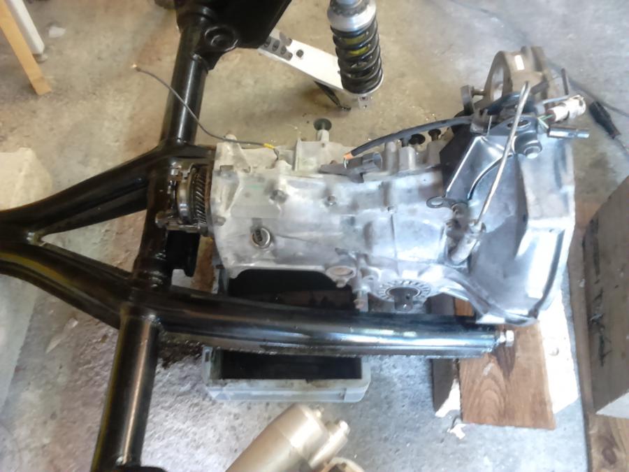 il me faut refaire le support avant pour qu il vienne s'adapter à ce qu il restera du nez de carter sub , refabriquer une platine pour les cornes de châssis avec une ceinture de boite un dernier détail , les fourchettes de boite , je vais les prolonger à travers le carter , il me faudra modifier le levier séquentiel pour rajouter une piste pour la 5eme vitesse et je pourrais aussi intégrer la marche arrière , ça devrait le faire c'est pas ce qui me traquasse le plus