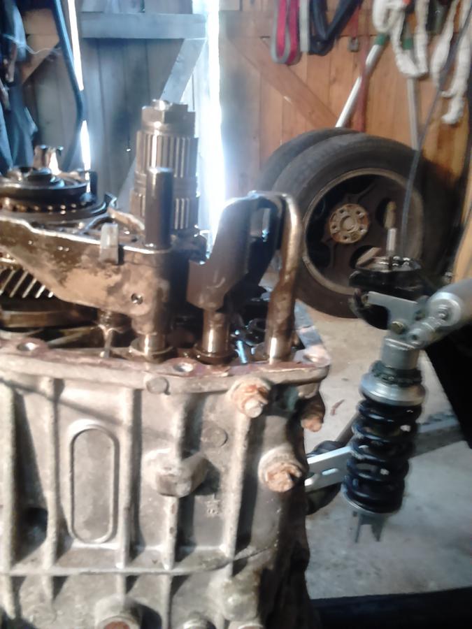 sur l arbre de gauche en sa partie supérieure , il faut solidariser les 2 parties cannelées , ce que fait subarugears avec un manchon spécial , je vais me fabriquer ce manchon en me servant des pièces du diff central ensuite c est là ou l on voit que la boite sub se prête bien a la modif pour être montée dans une vw