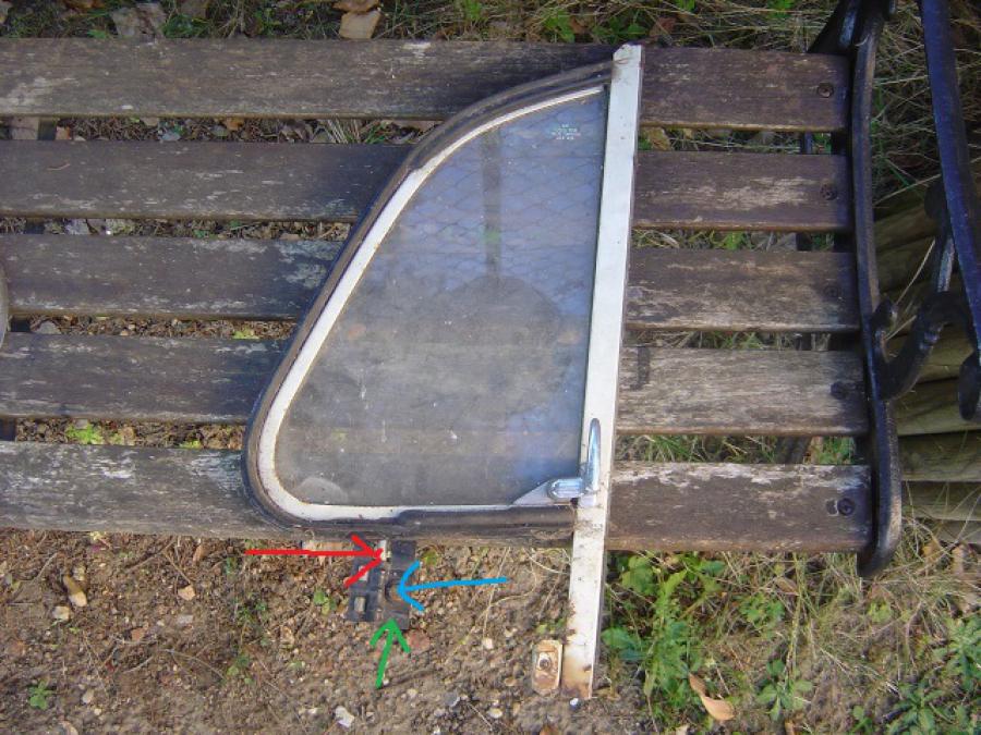- en rouge l'axe qui permet la rotation dans le cadre de vitre