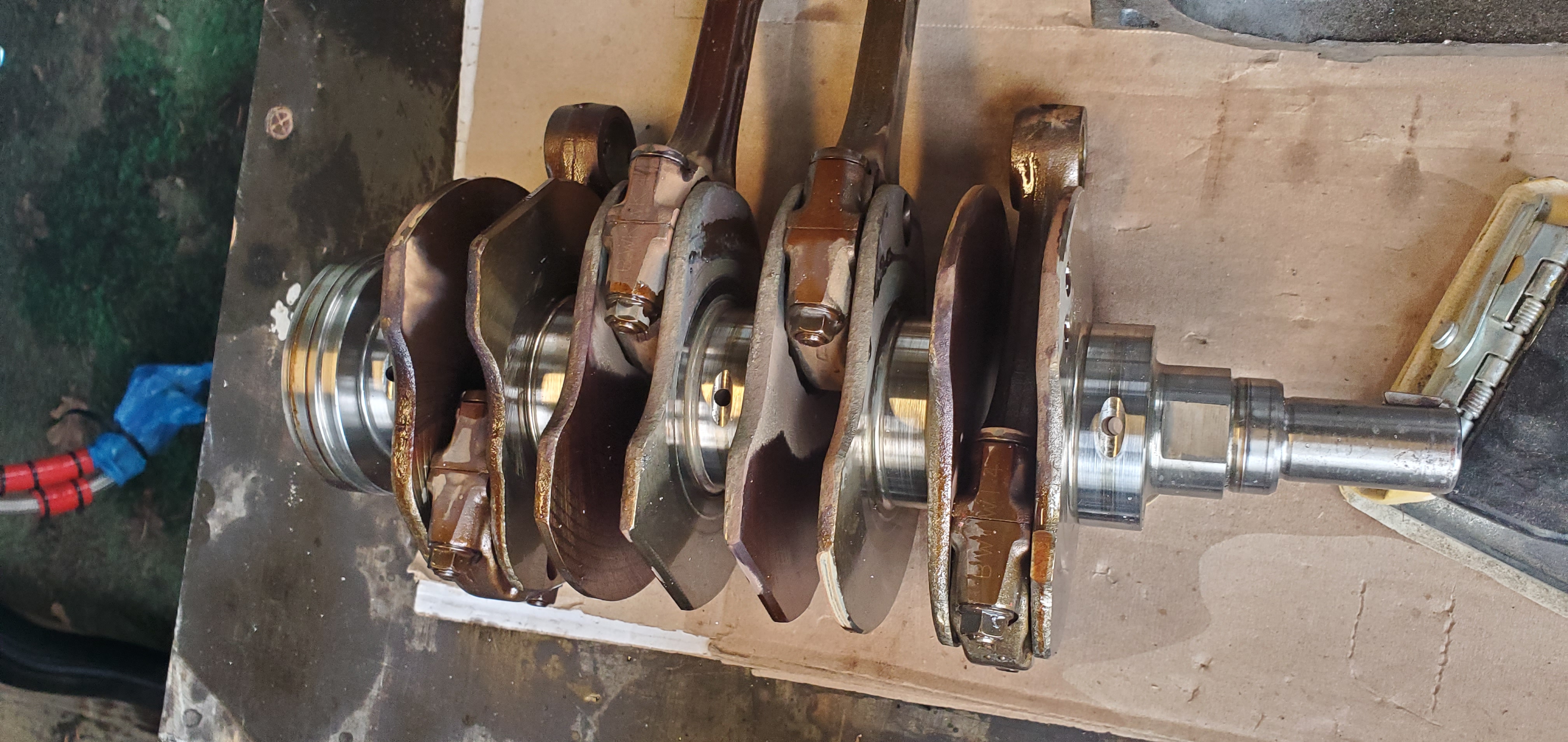 Au programme nettoyage de toutes les pieces du blocs et peripheriques huile, radia, etc changement de tous les joints changement des coussinnets de bielles et palier de vilebrequin par du tri metal acl, pompe a huile gros debit, pas de segmentation car elle a été controlé est tout est ok, demontage des soupapes changements des joints et rodage de celle ci