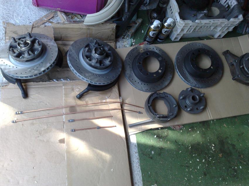 aujourd'hui j'ai peint les étriers avec le kit Foliatec special étriers de frein , peinture bi composants.Je les avait soigneusement poncés avant , le vernis avait bullé.... Me dites pas je les aurai peint en rouge, d'orgo c'est du noir, pis je prefere la discretion