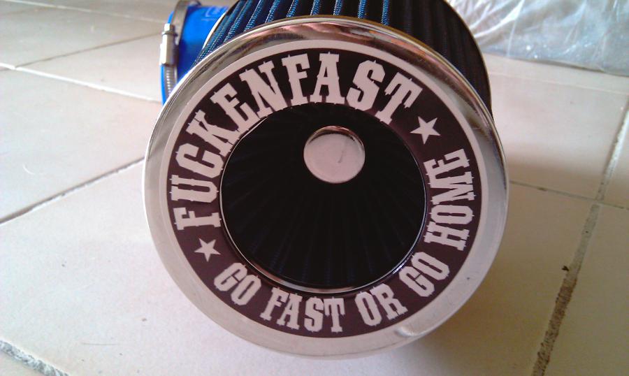 Après montage du filtre sur sa durit, trop de chrome, trop tunainge, pas beau, hop un petit autocollant pour