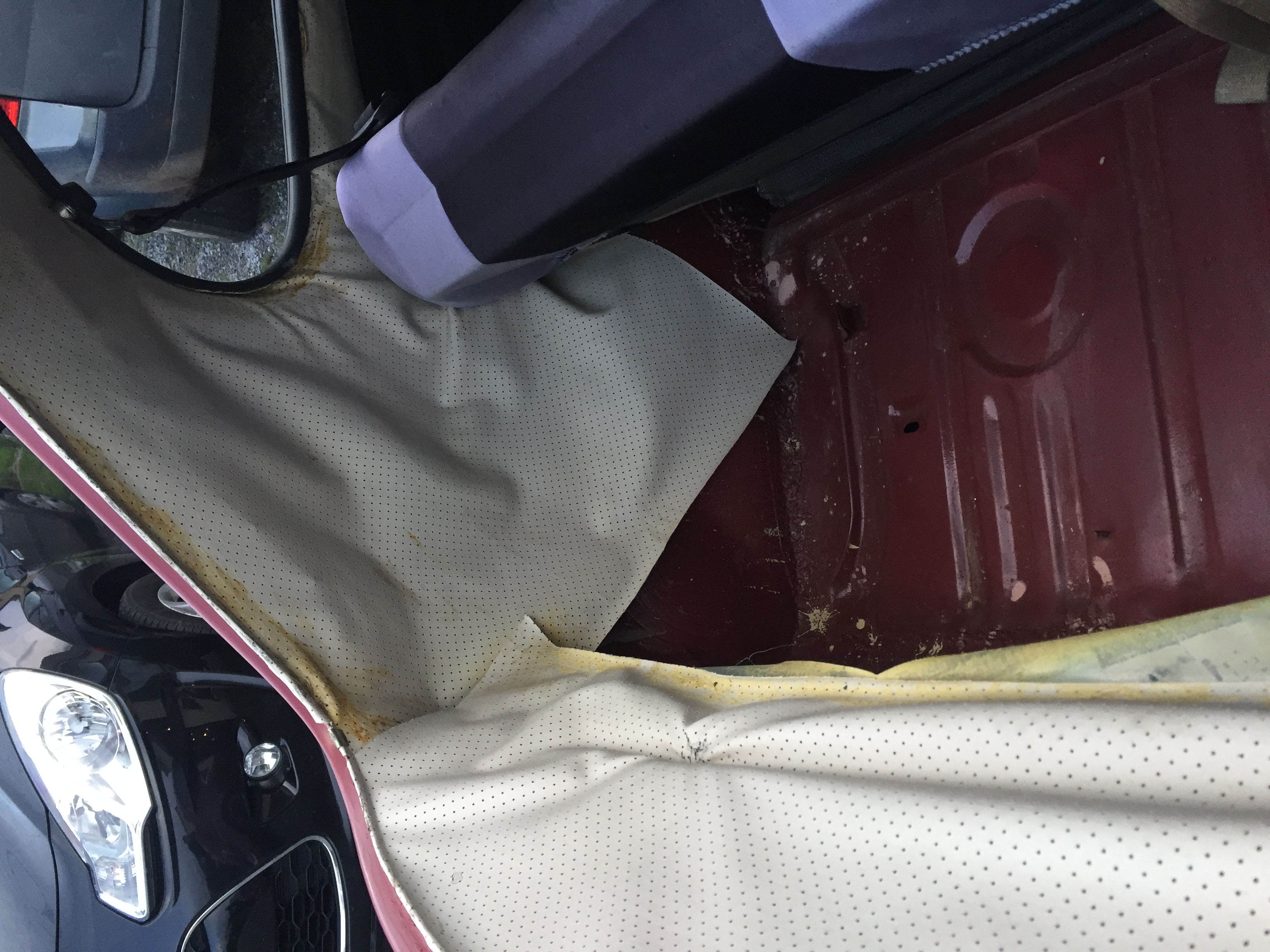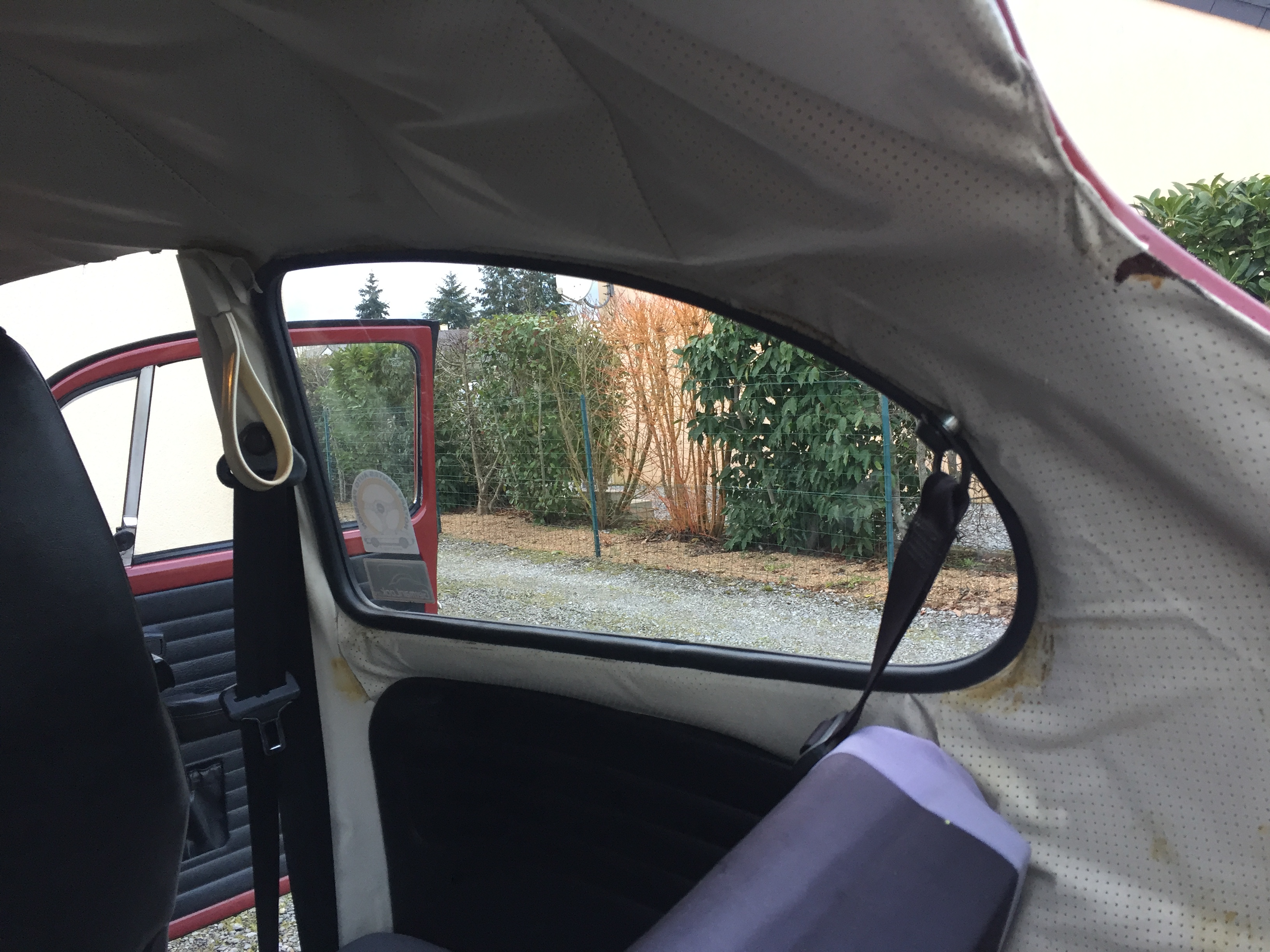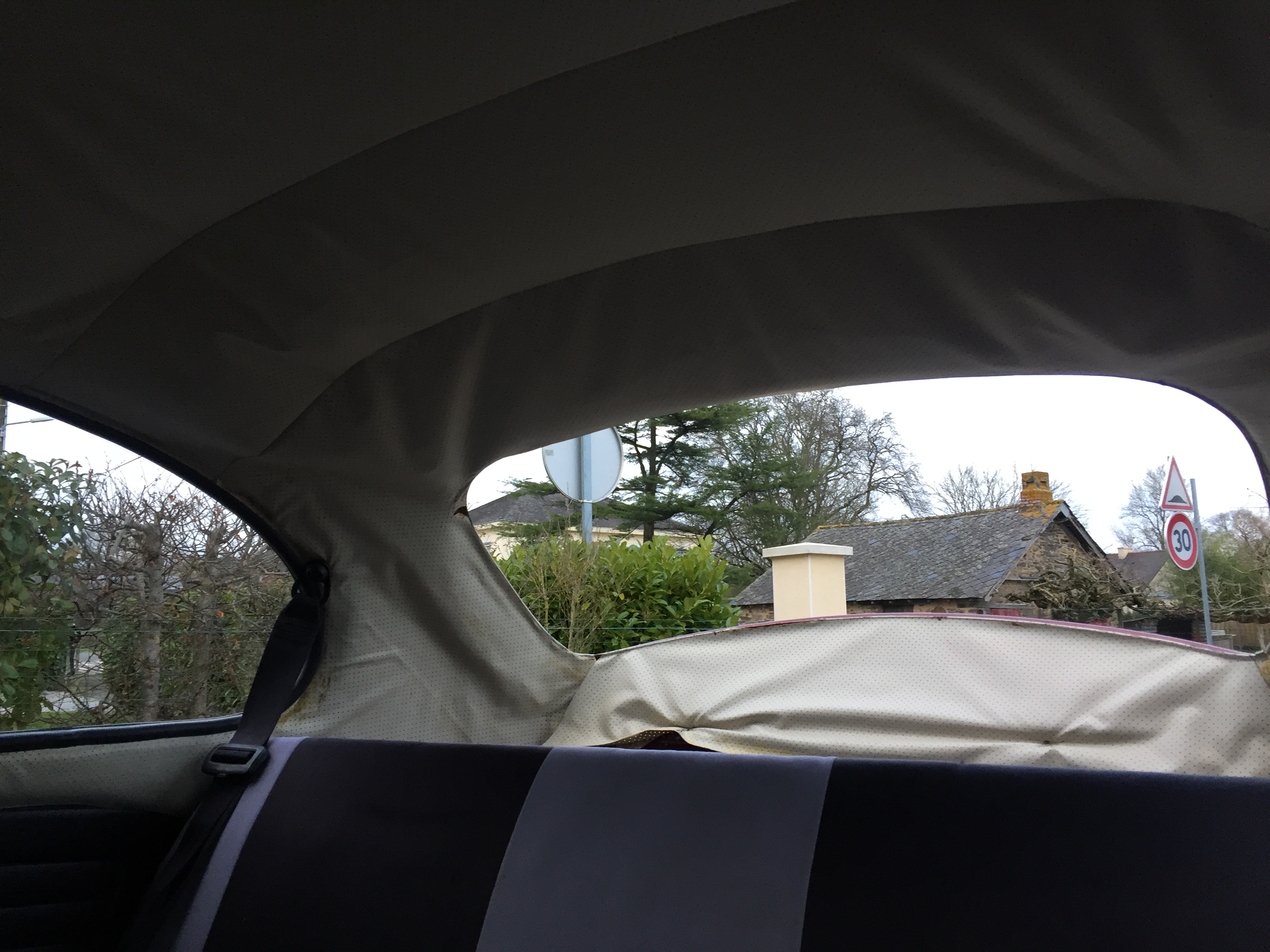 De retour de chez Le sellier.J’aurais pas fait pire que l’ancien proprio mais j’ai pas voulu le faire moi même.J’en profite pour changer mes vitres qui sont rayées et remettre les joncs chromés.