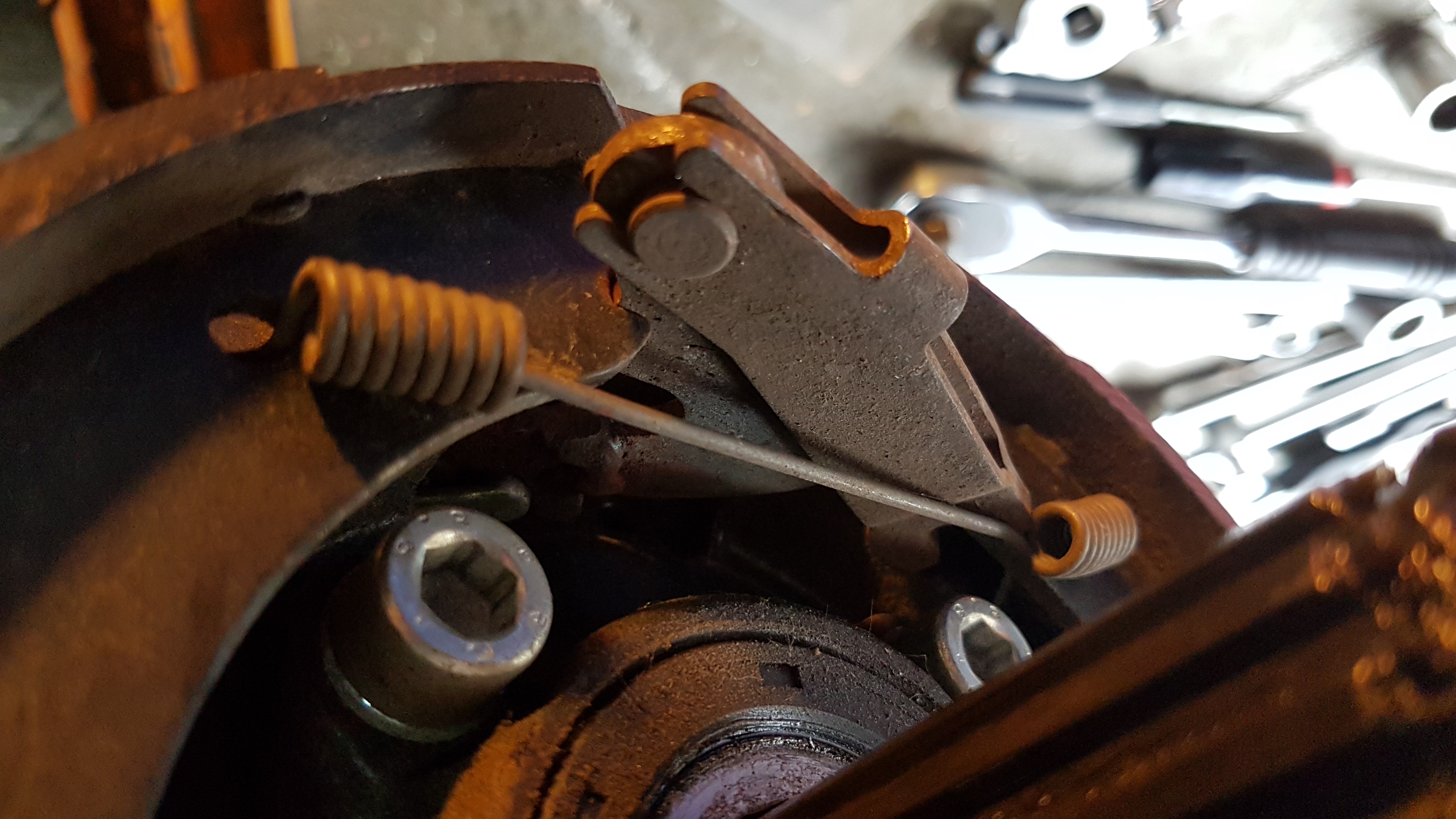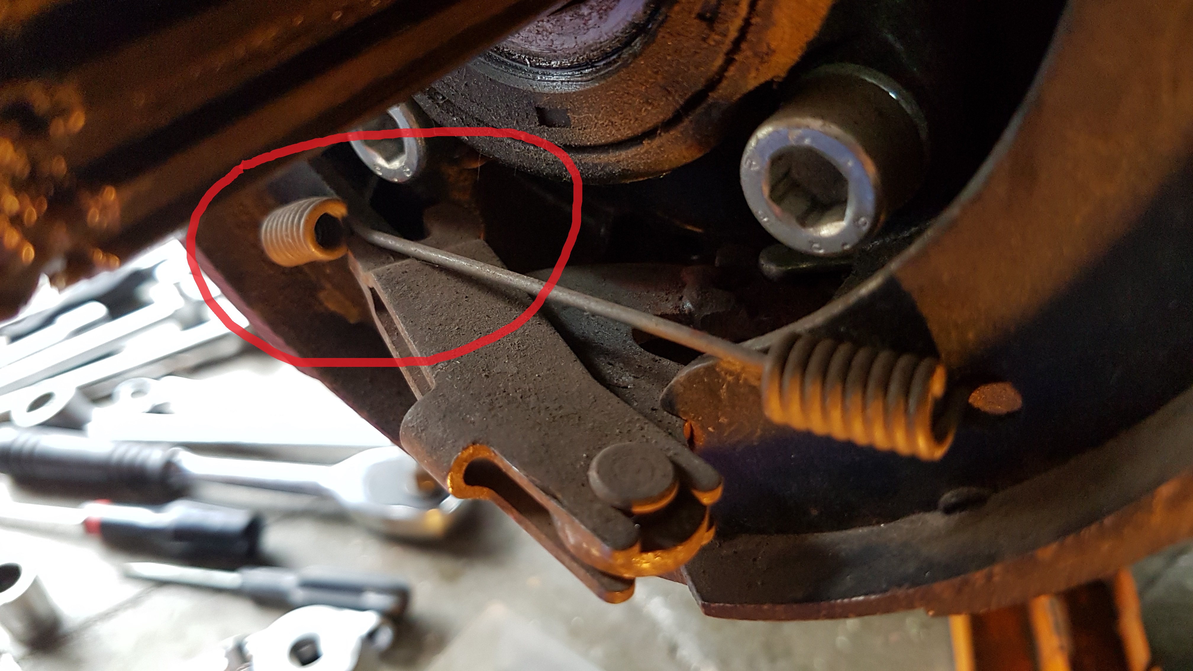 J'ai tout démonté du côté maudit, y compris la câble de frein à main. Mais avant ça, j'ai pris des photos :thumb: et j'ai bien fait.