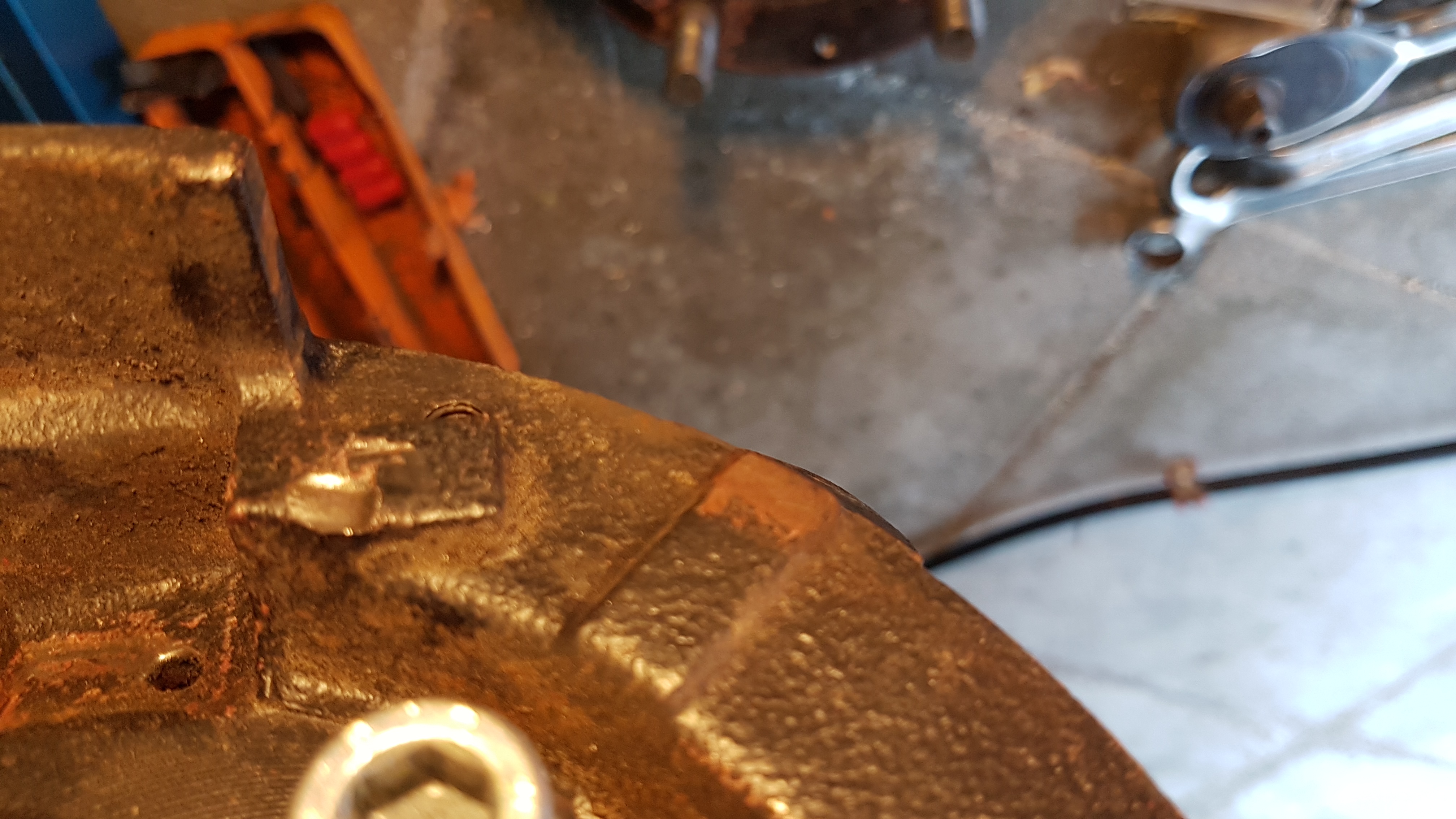 Comme si le mécanisme avait creusé le métal, et avait à force créé comme une petite marche l'empêchant de se déplacer, pas cool, s'il l'a fait , il risque de le refaire, je pensais déjà "soudure pour combler et meulage", arrondir le coin du mécanisme ... pfff j'ai pas de poste à souder :(