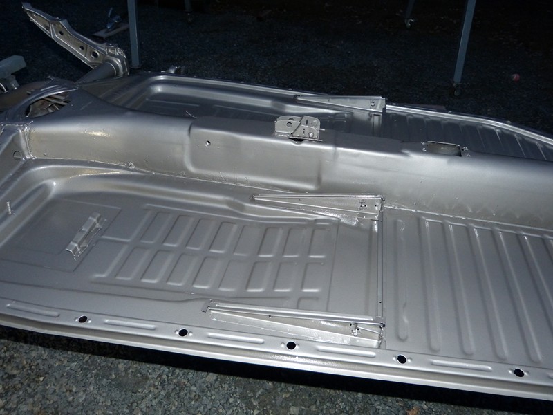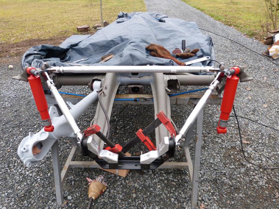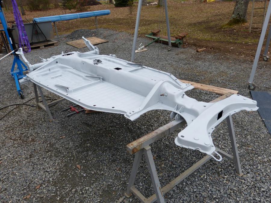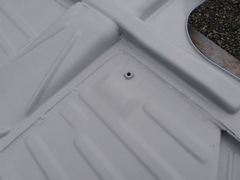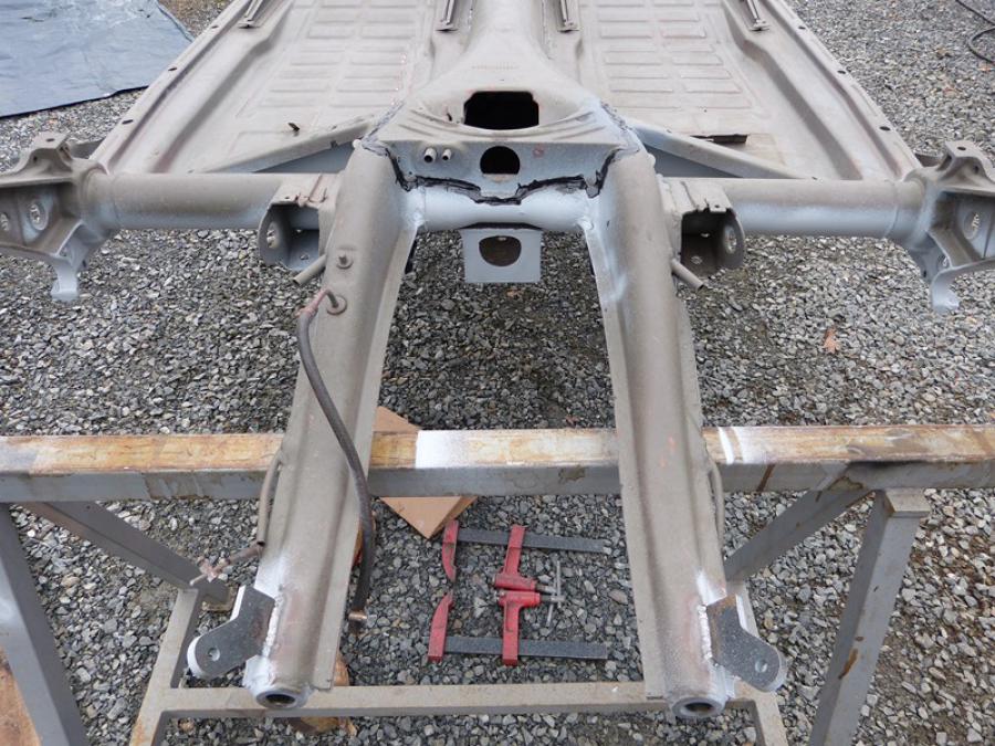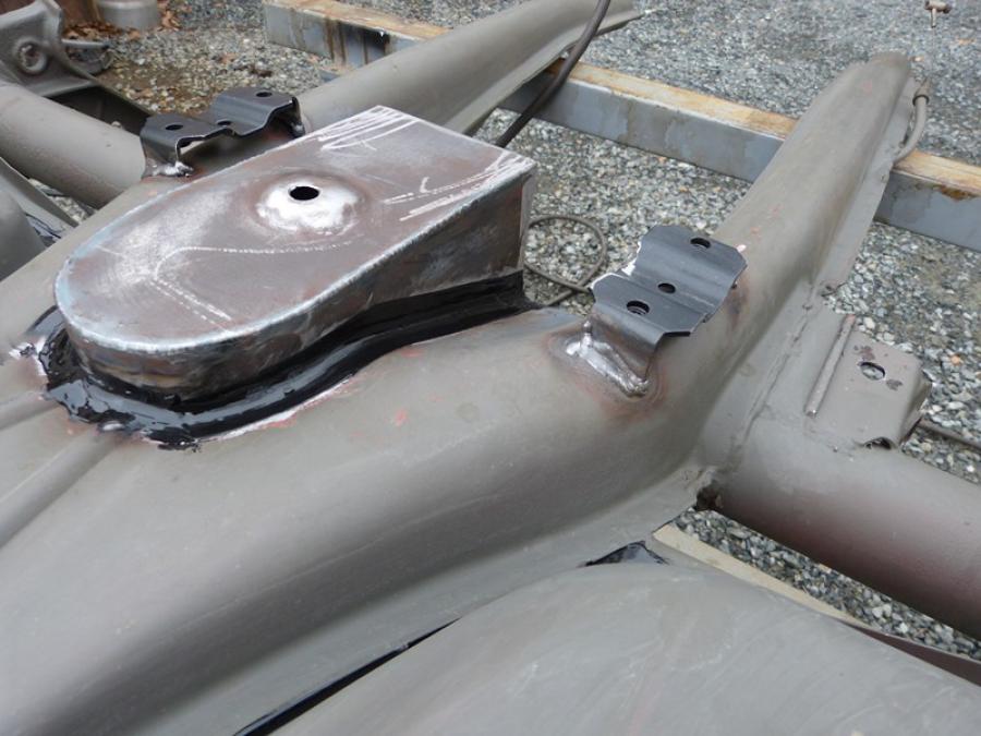 Présentation du bouzin maintenant que tout est soudé et traité, je démonte tout et je fait les joint d’étanchéité et passe une couche d'apprêt garnissant sur le dessous du chassis