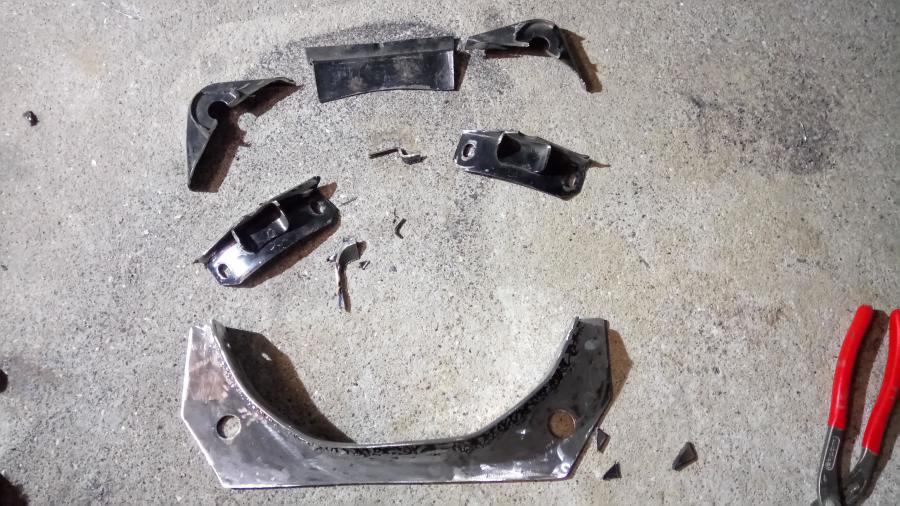 …Du coup après deux entailles puis avec tendresse et douceur j'ai plier dans l'autre sens la tôle qui reçoit les attaches ceintures. (Elle est de 09/1963 soit modèle 1964 donc pas obligatoire mais pour les siège enfants c'est plus simple).