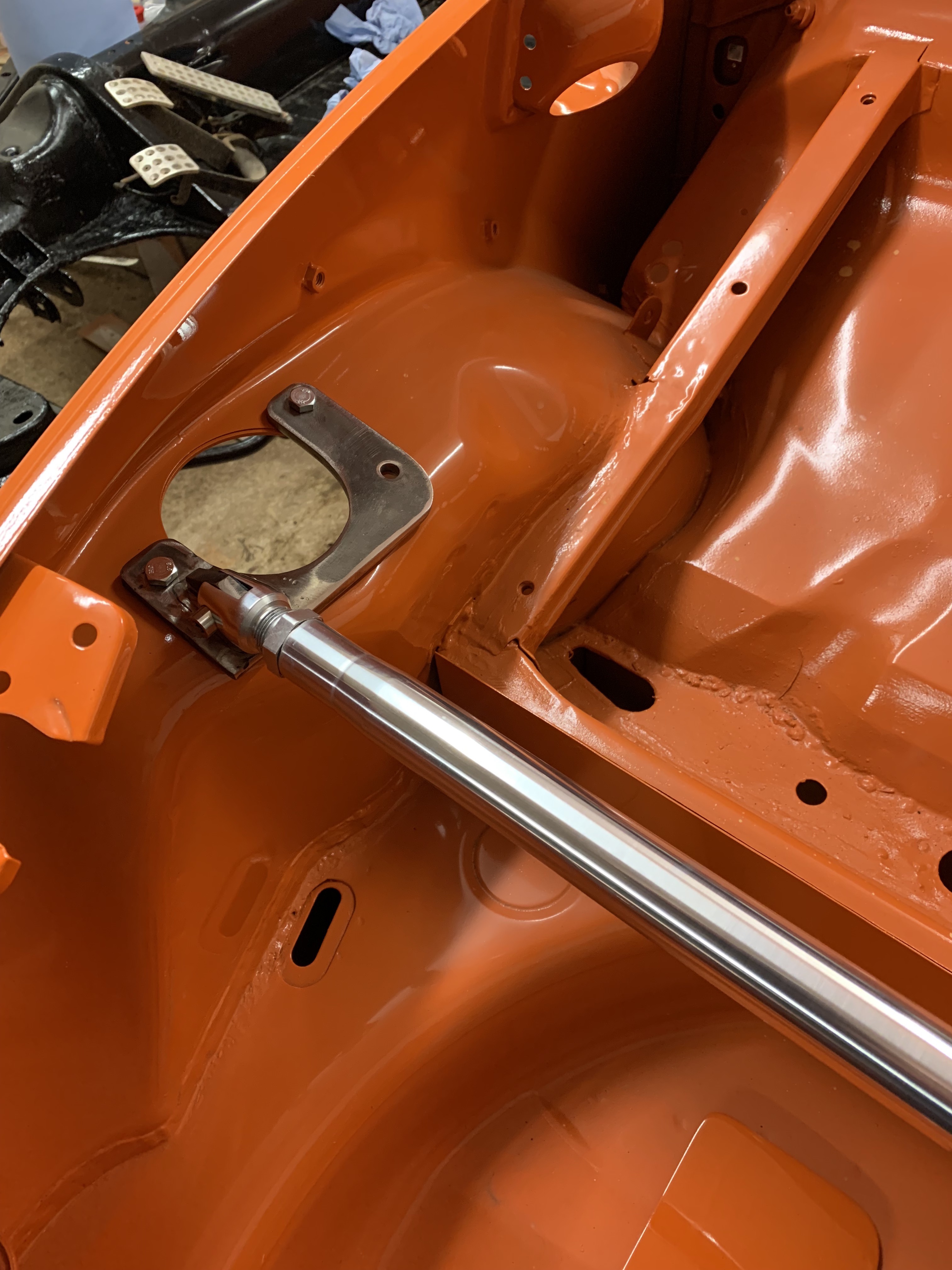 et montage a blanc de la barre anti-rapprochement fraichement usinée par mon père, suivant le même style/schéma que le triptyque arrière (également fait par mon père)...