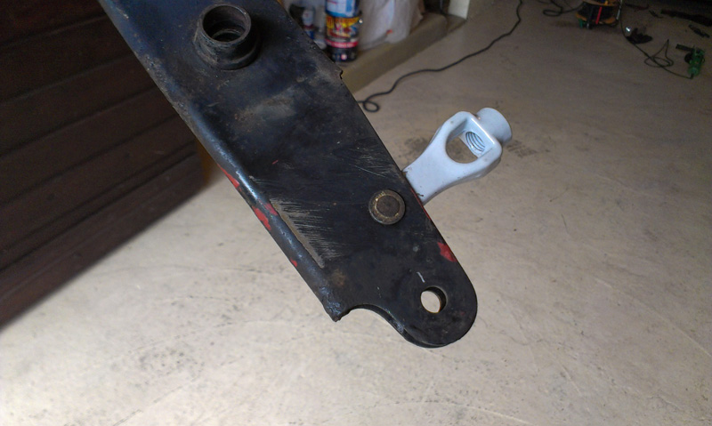 - même genre d'histoire avec le frein à main hydraulique. Afin de respecter l'alignement avec le maitre-cylindre déjà en place sur sa chape, j'ai repercé le levier, et modifié une came de cox. Le frein à main marche à la perfection!