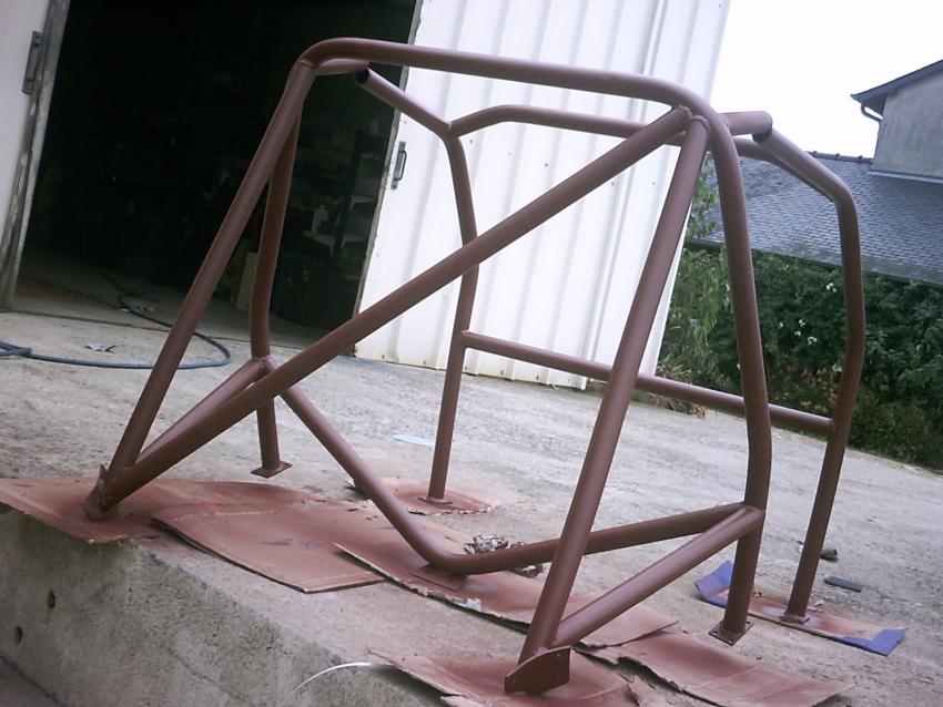 l'arceau est en apprêt anti rouille, les platine sont soudé a la caisse et l'interrieur est apprété