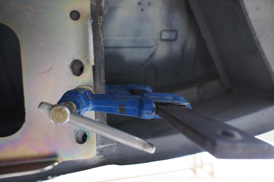J'ai du couper le retour coté passager, agrandis la fente de l'autre coté, disqué le retour de tole du longeron coté conducteur !!!!
