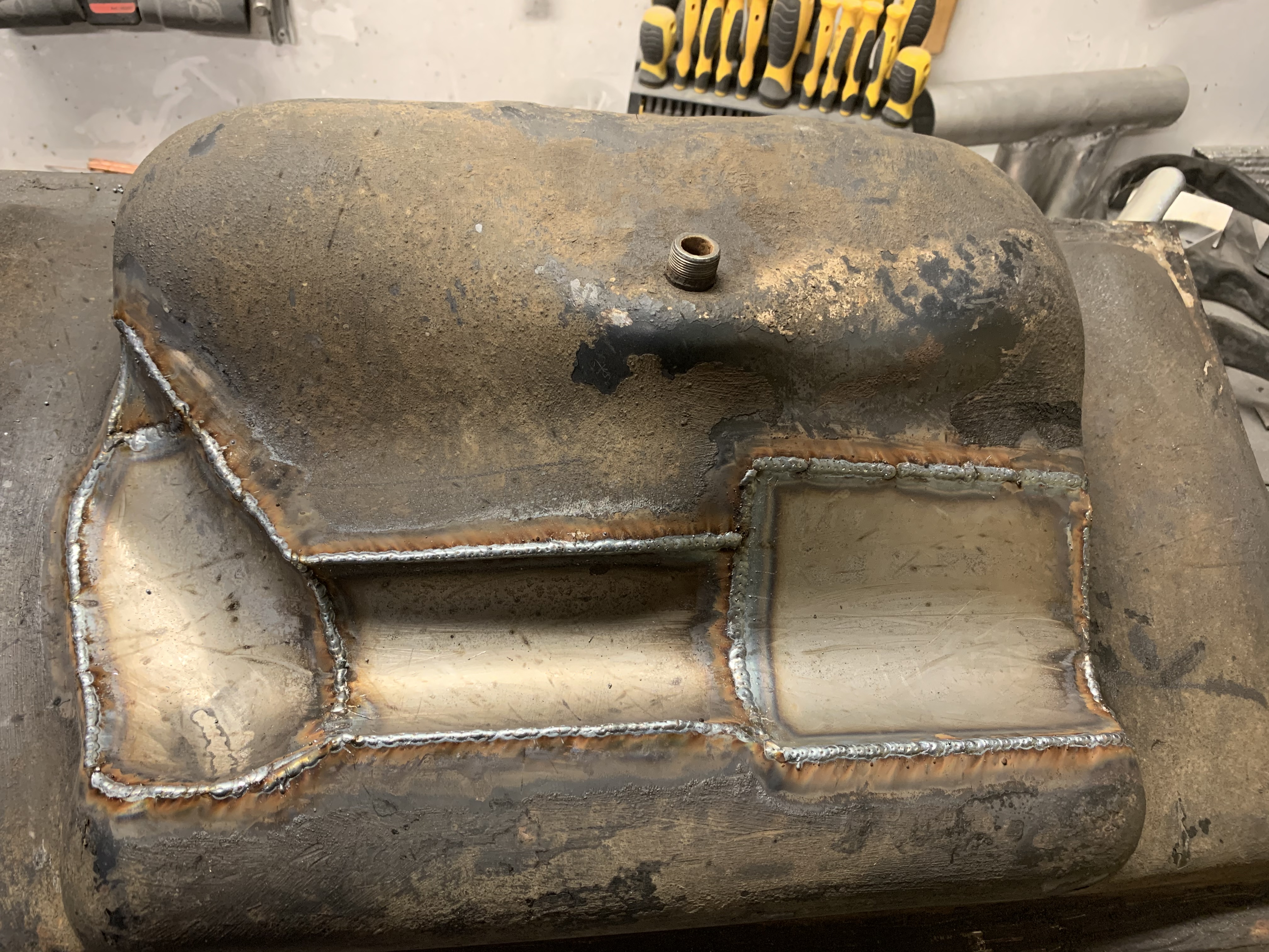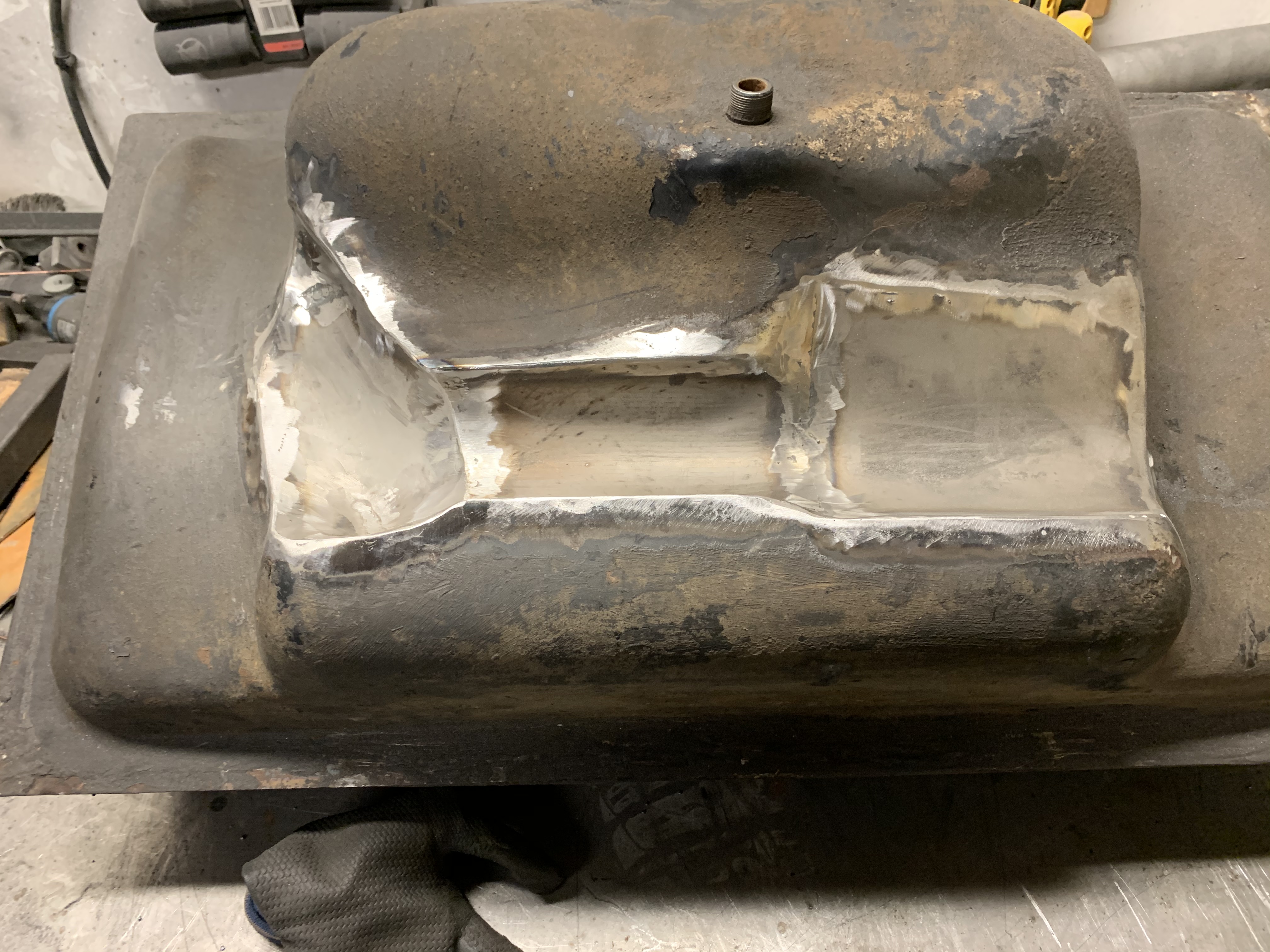J’ai quand même pu avancer un peu, j’ai modifié le réservoir pour pouvoir le remettre à sa place d’origine, et j’ai du le découper nettement plus que ce que j’avais prévu !..
