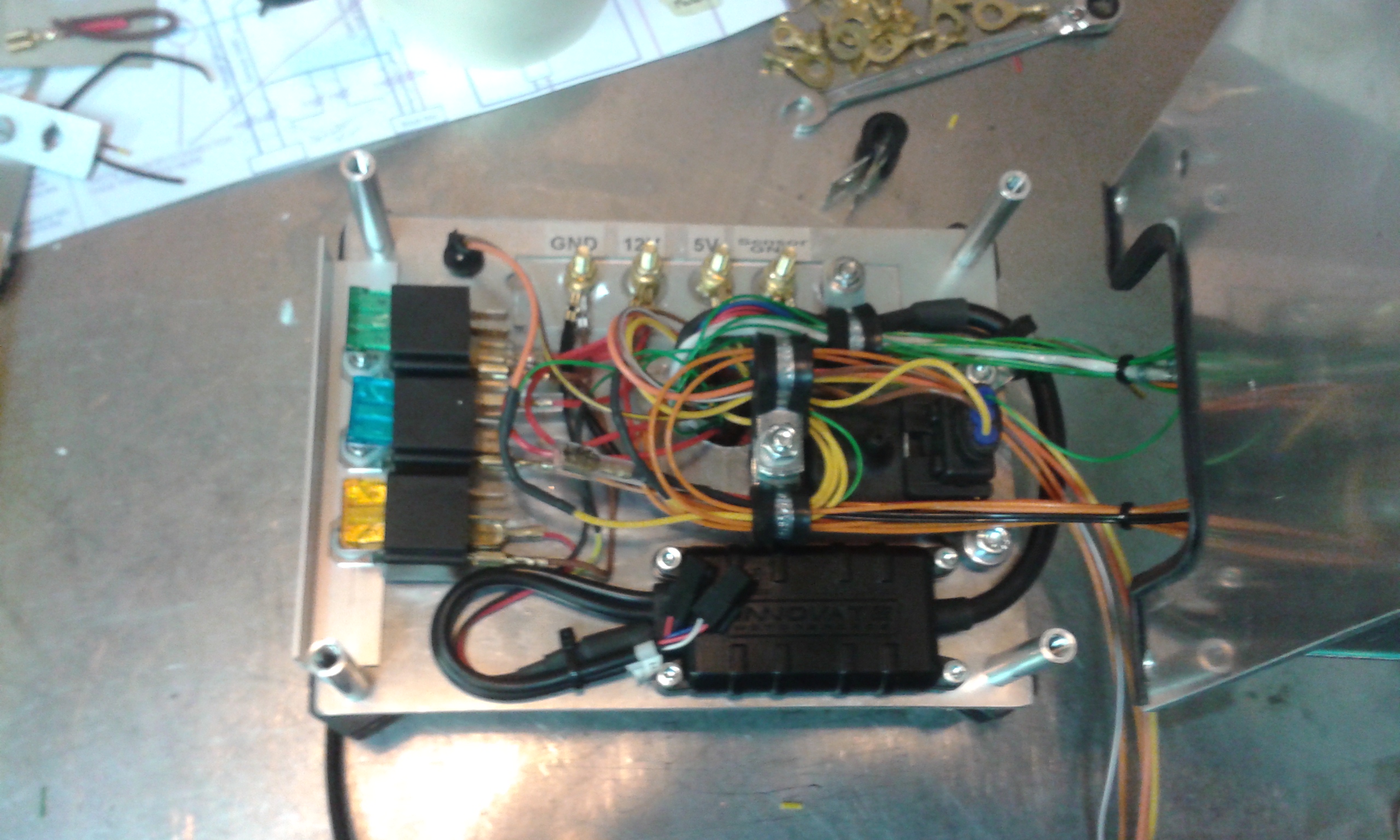 J'ai entièrement câblé le module hors de la cox, ce qui m'a permis de travailler dans la partie chauffée du garage (5° la ou la 1302 se trouve!) Il me restera quelques fils et les alims à faire quand je monterai tout dans la voiture.