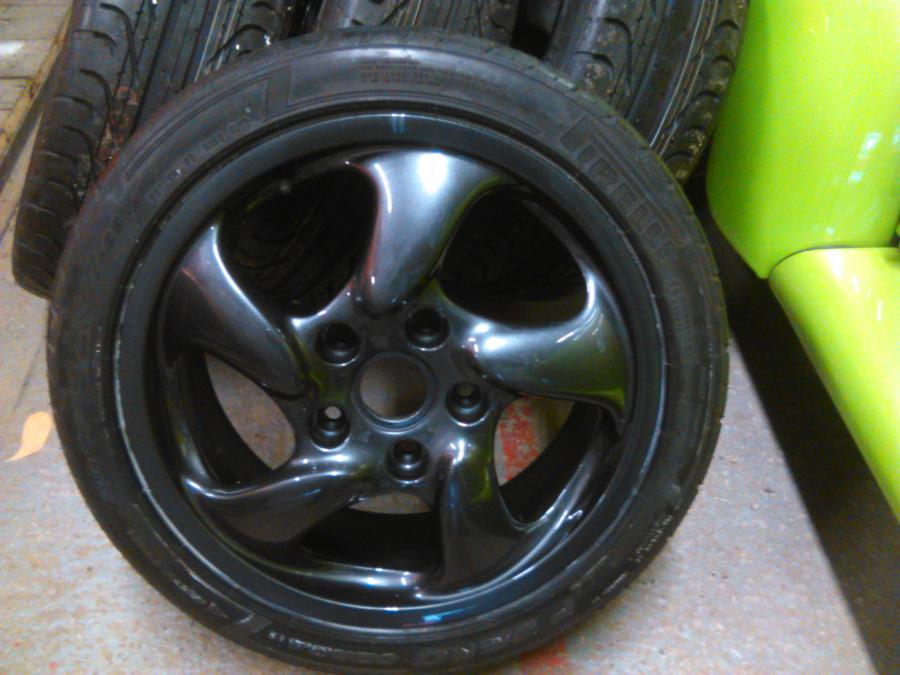 Pirelli p zero corsa, semi racing homologuer route. En 205/45/17 aux quatres coins. Les flans sont bien rigide et la gomme de la bande de roulement parrait bien accrocheuse.