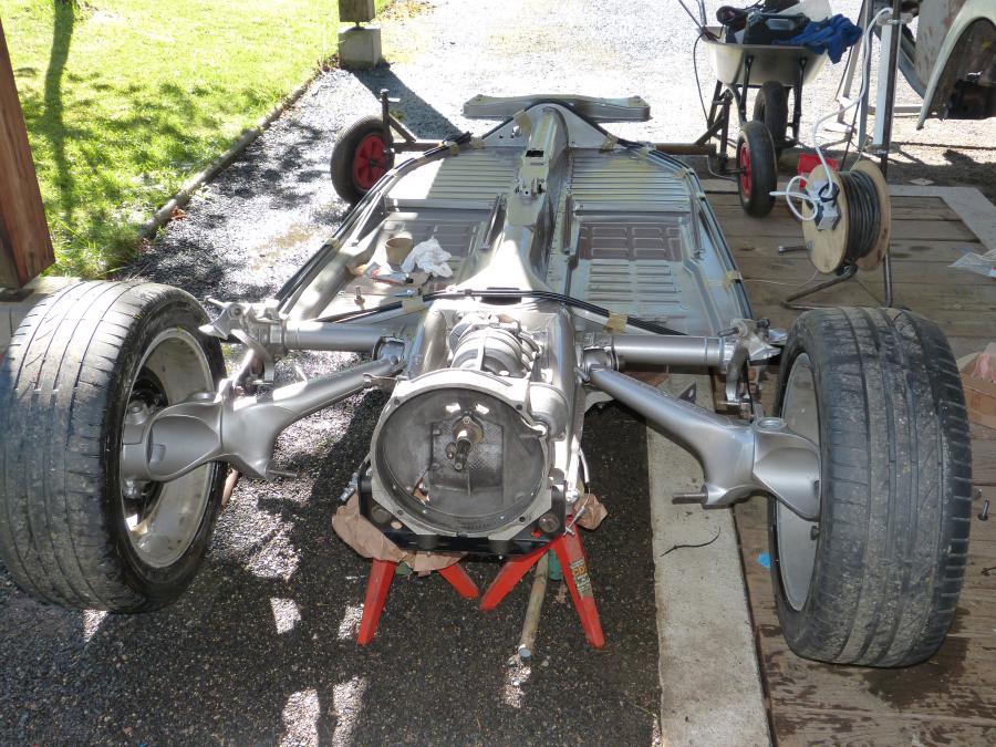 montage a blanc remontage des barres de torsion, train arriere et boite pour la suite je me suis attelé a refaire toute la partie tolerie manquante