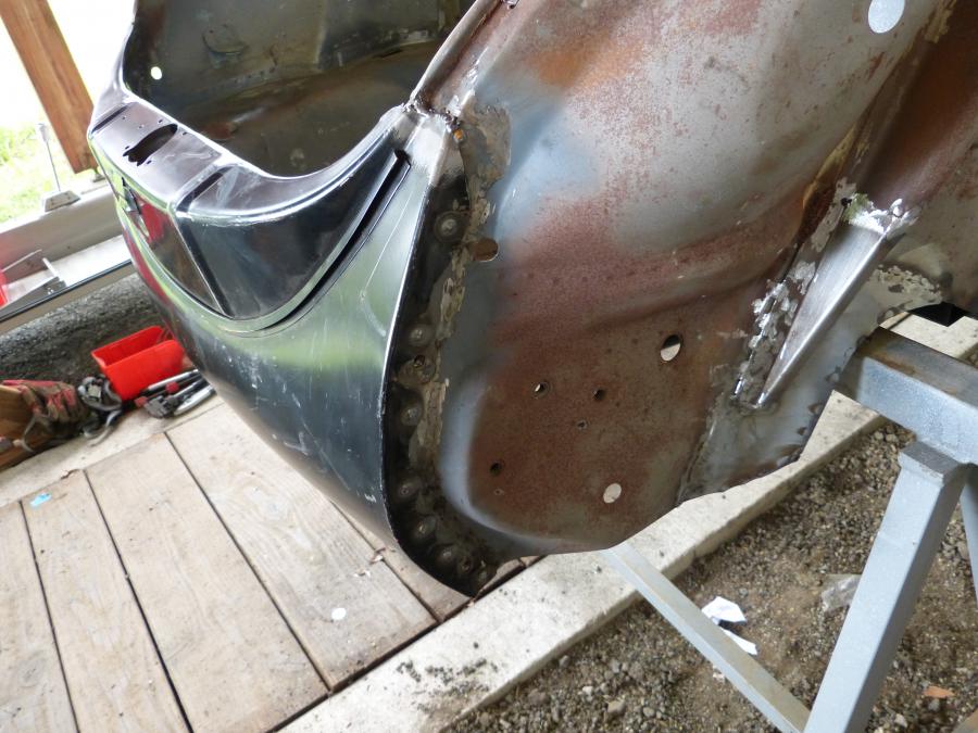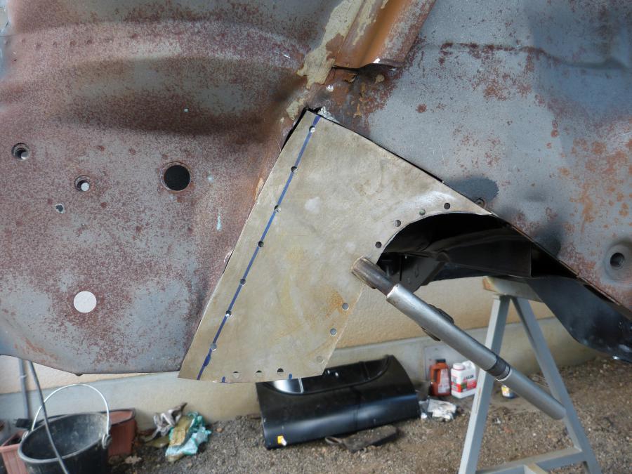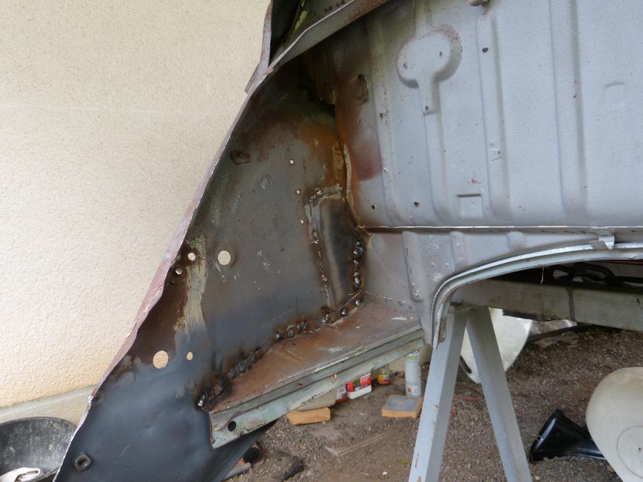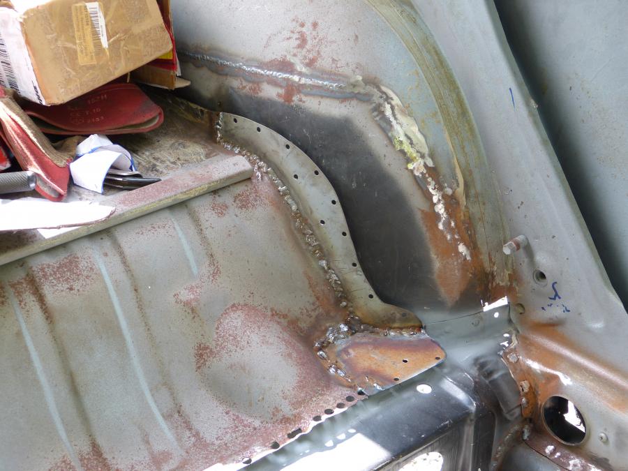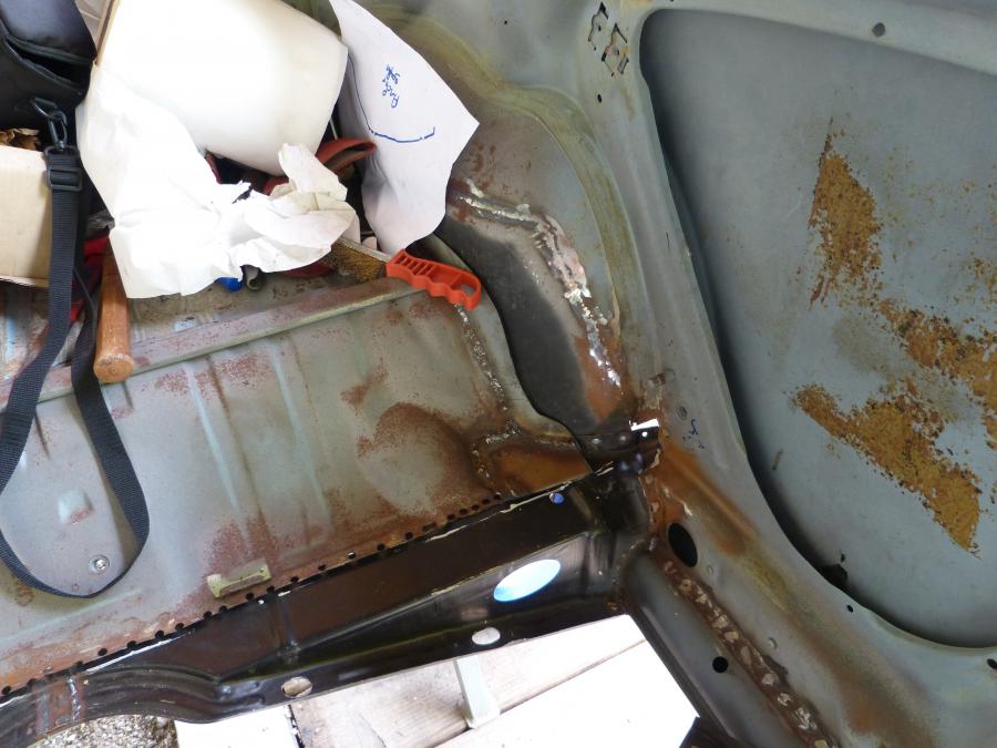 Ensuite viens le temps de refaire la tôle de fond de coffre arrière pied porte passager