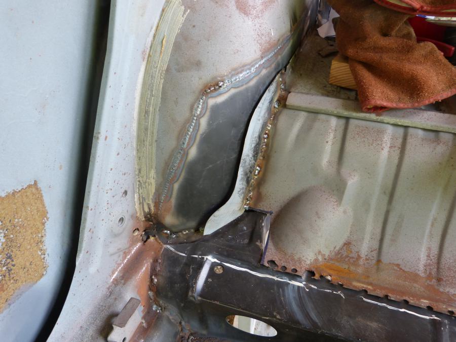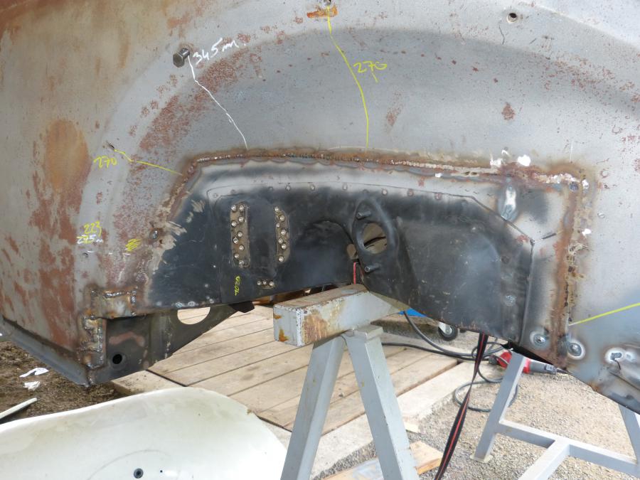 états des lieux de toutes les soudures à meuler, vous noterez que j'ai refais les cornières des puits d'amortisseurs