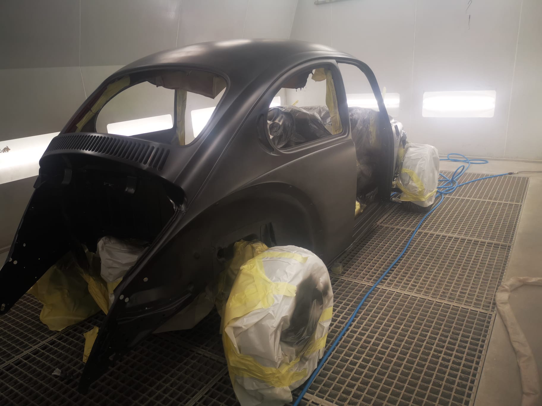 J ai fait la prepa carrosserie avec les mastics et la soudure. Le reste c est pour les pros! Primer epoxy Dupont - 2 couches poncées entre les coups Primer noir « mouillé mouillé » Noir Brillant direct L041- la bete noir des carrossiers - 3