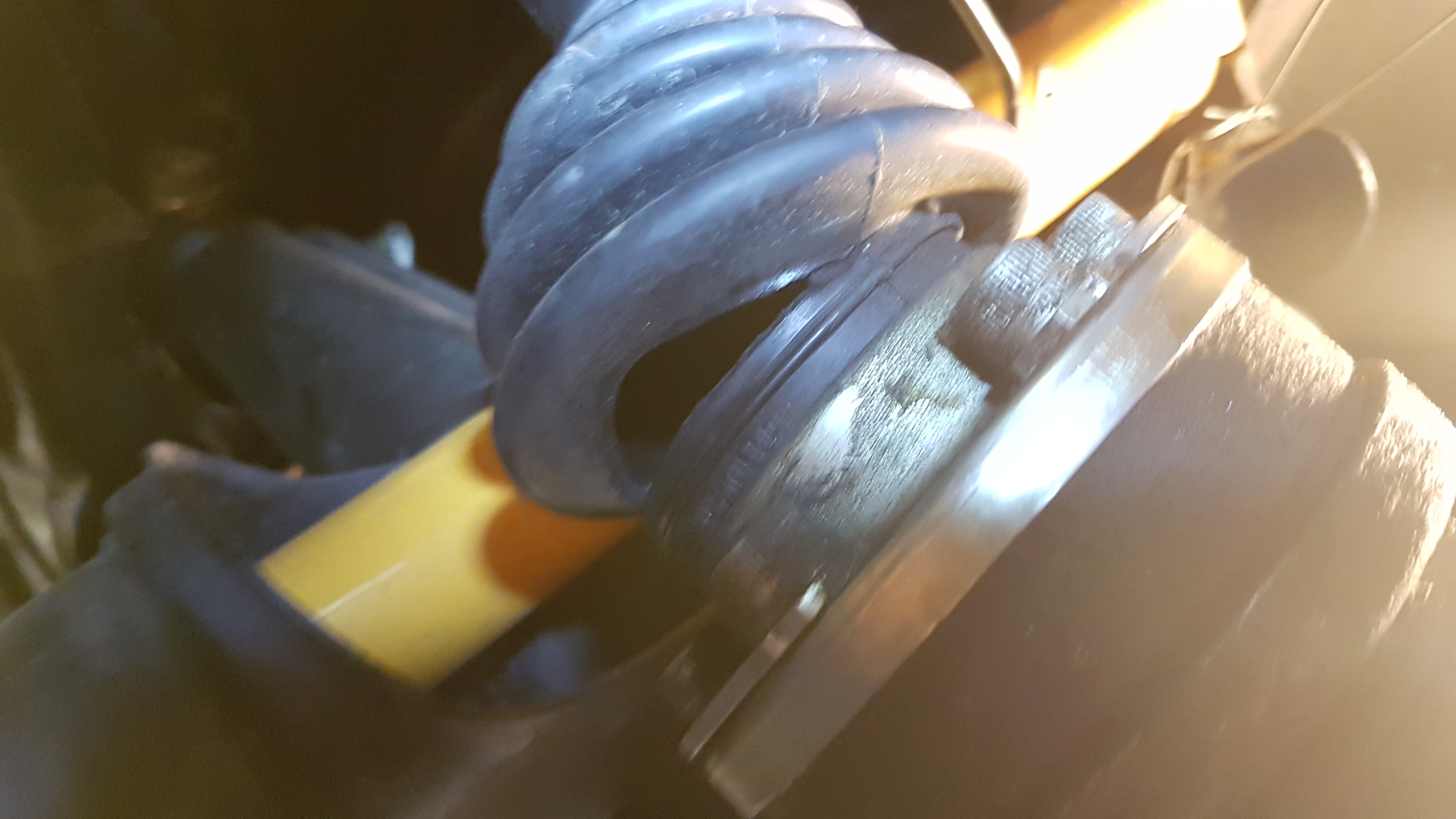 Celui de gauche étant un peu récalcitrant à sortir de son emplacement au niveau de la corne de châssis, je me suis mis sur le dos pour avoir un bon appui ... et inévitablement j'avais un visuel imprenable sur le soufflet de cardan