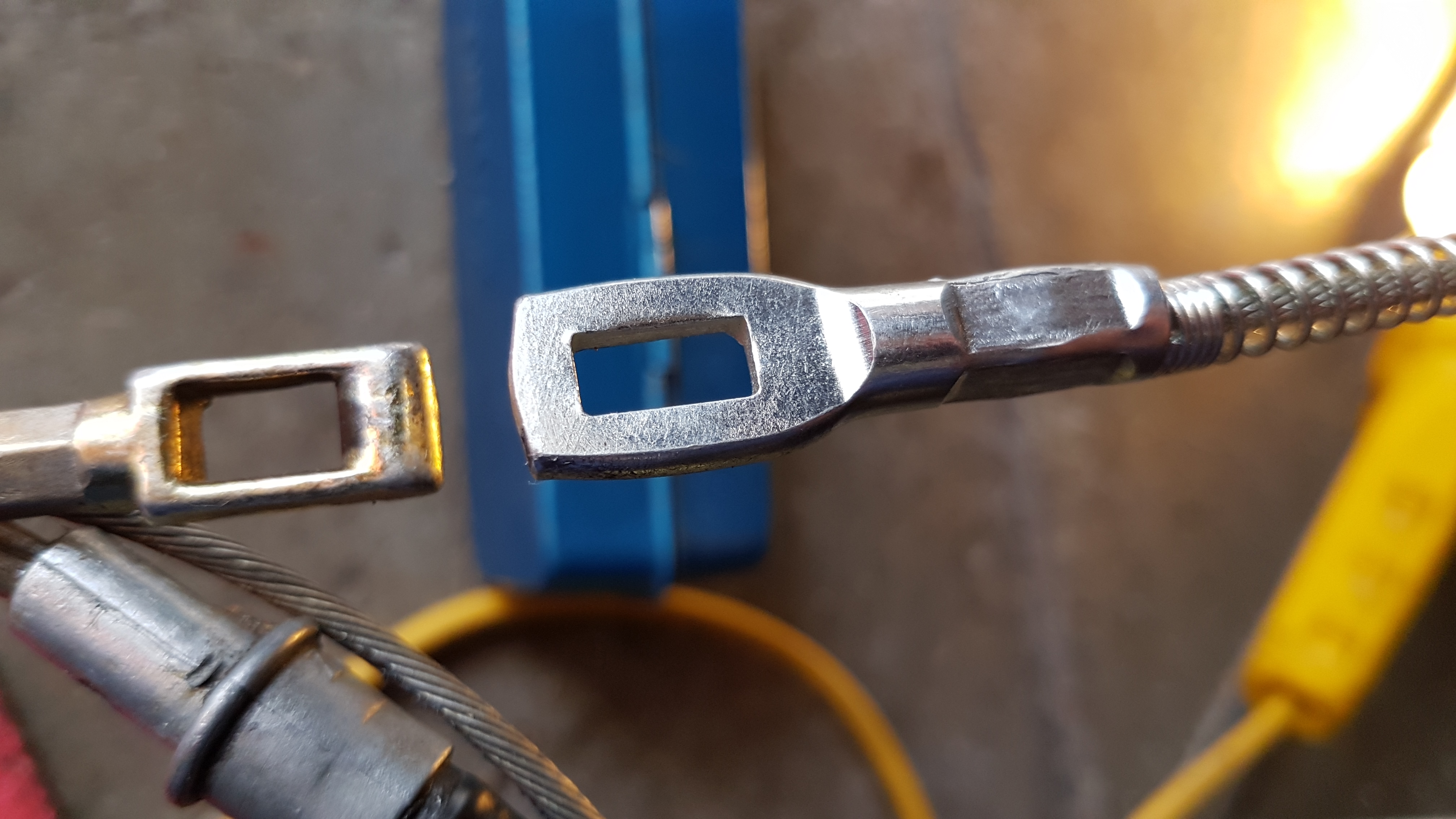 Après piochage sur le web, je pense que cette agraffe n'est pas pour l'axe de fonctionnement mais plus pour l'axe d'accroche du câble d'origine