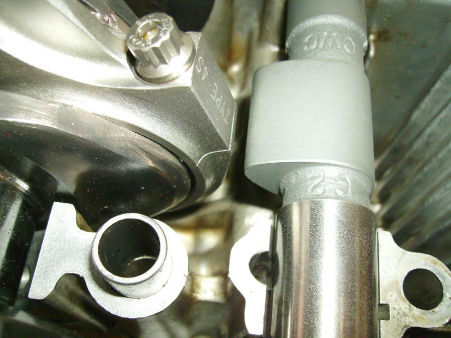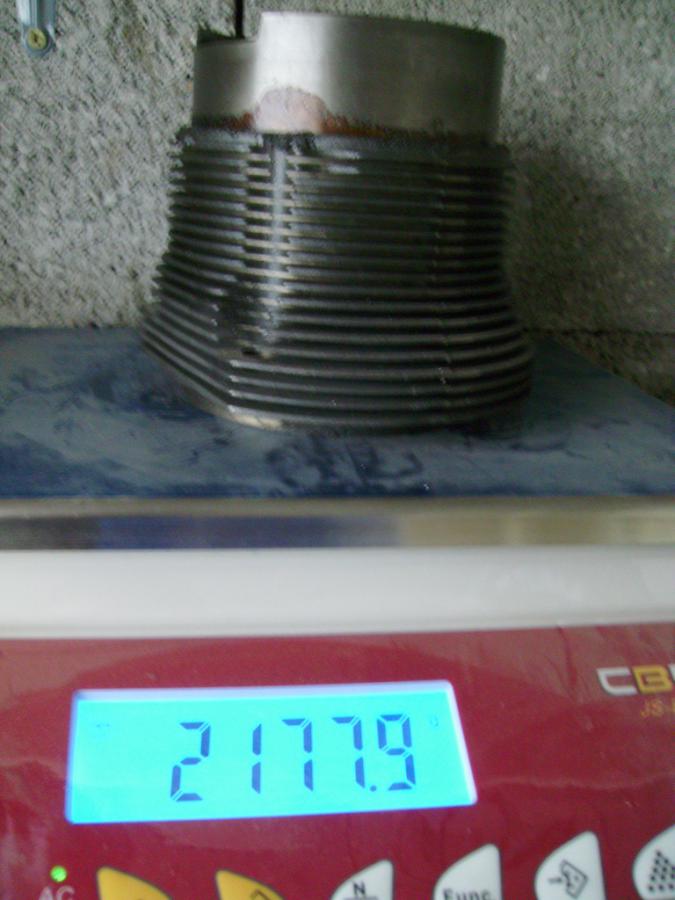 Les 2 cylindres pesés font la même longueur il faudra que je fasse faire des cales sous les cylindres pour rattraper la différence de course et de bielle. A noter que les pistons on l'axe trés prés de la calotte pour ne pas avoir à monter des cales démesurées, la hauteur d'axe est de 25,4mm ce qui impose d'avoir le racleur au niveau de l'axe.