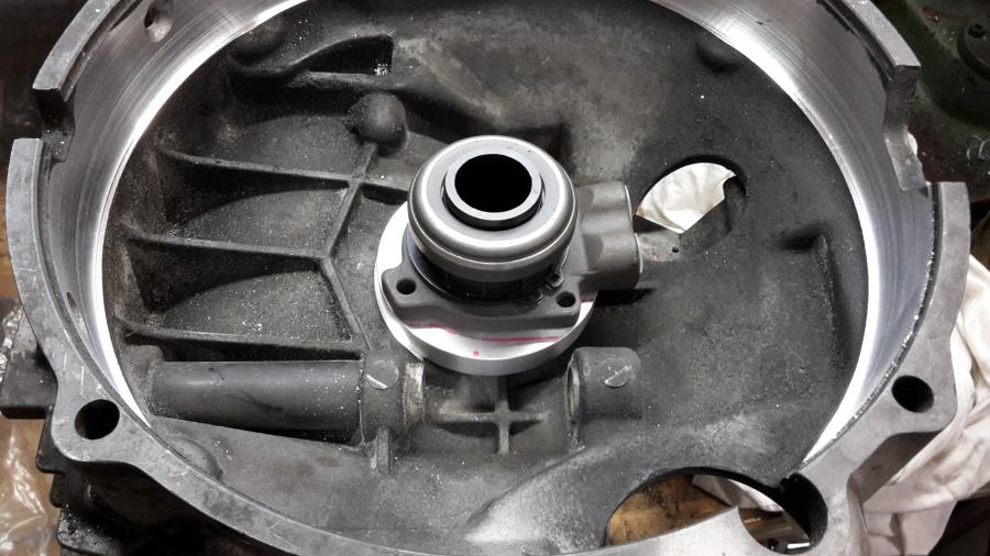 Mise en pression du circuit. Testé à 4bars, puis réglé à 3 bars. De micro-fuites réglées en resserant, mais surtout une que je n'ai pas résolue pour l'instant, et qui concerne l'un des raccord "ebay". Peut être que mon joint torique dessous est pincé, à démonter pour vérifier. Autre chapitre, la boite est revenue d'usinage! Un plat est réalisé pour permettre l'installation d'une butée hydraulique, et j'en ai profité pour faire retoucher le diamètre extérieur. Plus propre qu'à la lime...