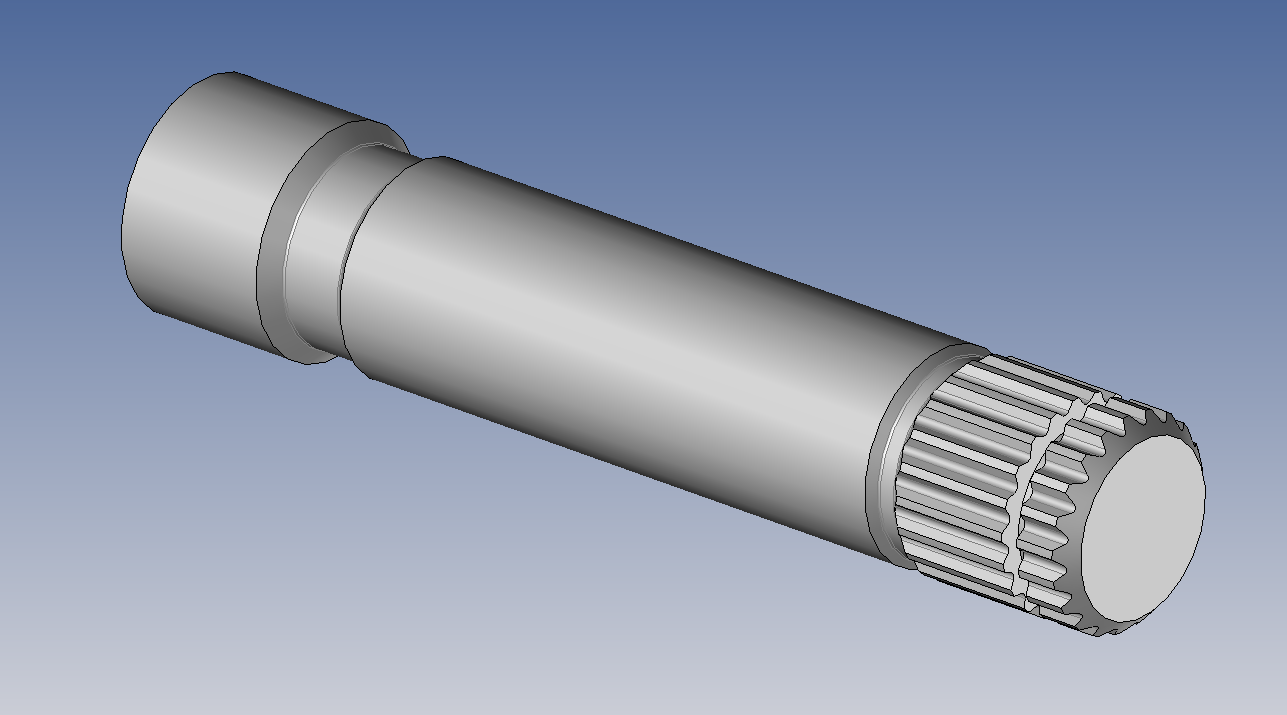 ha oui aussi cette semaine modélisation du cardan pour pouvoir usiner mon barreau hybride , donc barreau de cardan avant dont je conserve les cannelures coter boite et usinage cannelures moyeu arrière de sub de l autre coter