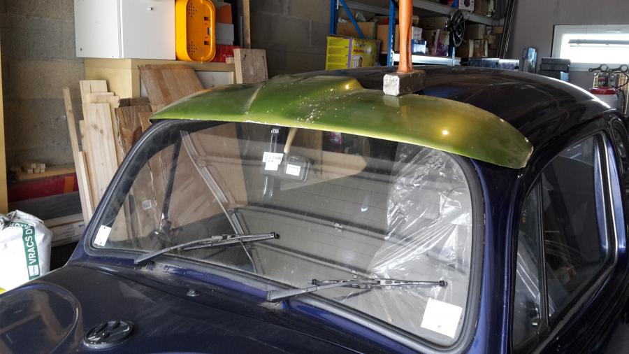 Et sinon, j'ai retrouvé un accessoire d'époque sur un vieux toit, une magnifique casquette de pare-brise en fibre. C'est décidé, je la monte, j'aurais un german au look inimitable