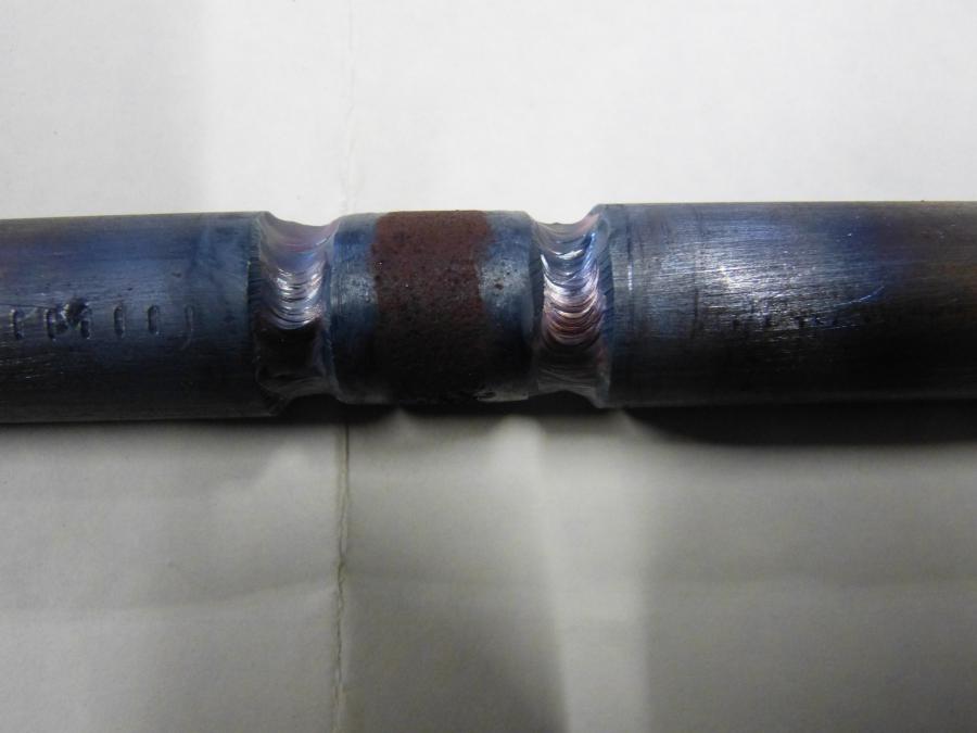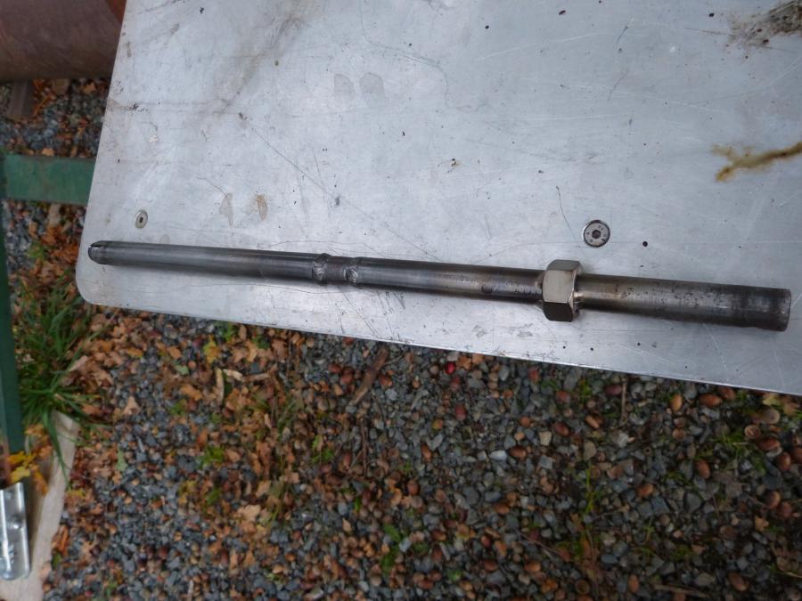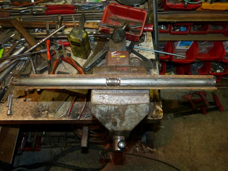 Je décide donc de rallonger mes tubes de 25mm, on coupe le tube au milieu, on insert un rond plein de 90 mm de long et au milieu un autre tube coupé à 20 mm. Toutes les pièces sont chanfreinées, et mon père se lance dans la soudure, la première passe sert à faire joindre tout les morceaux ensemble et surtout le rond plein. Une fois chaque soudure faite, on laisse la pièces refroidir à l'ambiante surtout pas de bain d'eau, soudage TIG baguette inox.