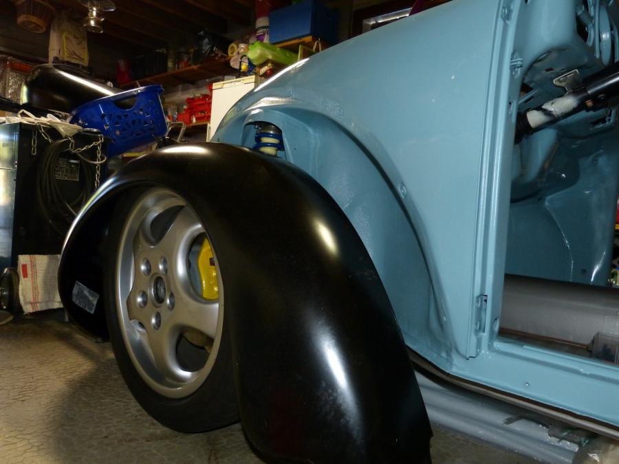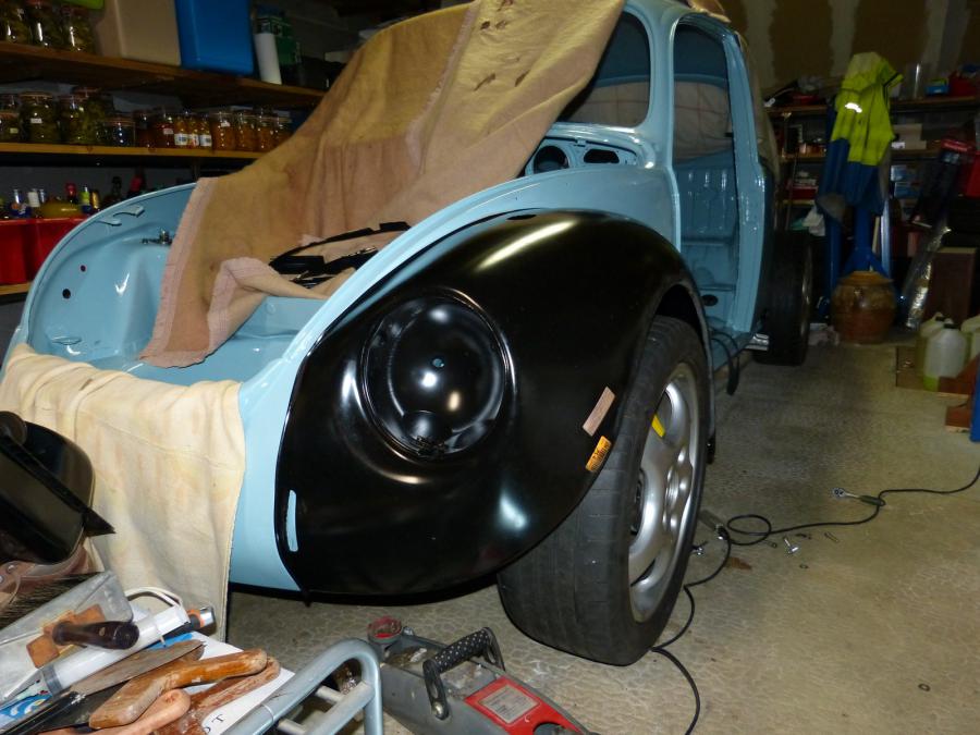 Je me suis occuper des ailes avant aussi, verifier leur bonne qualité les trous de fixation et leur ajustement, c'est de la repro donc rien ne va correctement. Il m'aura fallu une journée pour les ajuster à peu prés correctement. Le retour de tôle est mal fait, les trous de fixation tombent pas en face enfin bref.