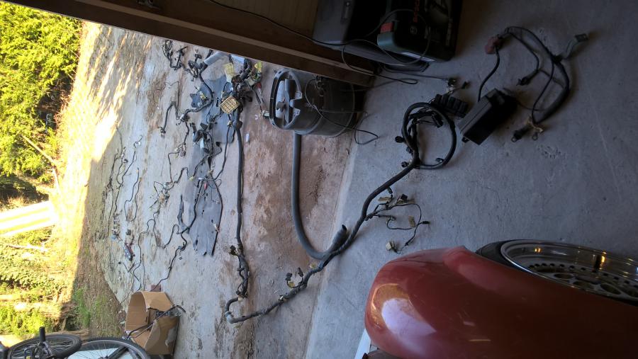 lundi, moi et ma femme et une autre poulette, on a sortit le faiseau électrique Subaru de l'étagère, un gros paquet de fils!!! Avec mes photos et le schéma filaires sub, on l'a démêlé et degainé complet, aujourd'hui j'ai supprimé l'abs ,c'est pas facile, il y en a des fils!!