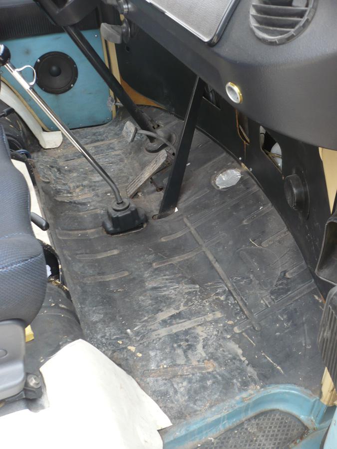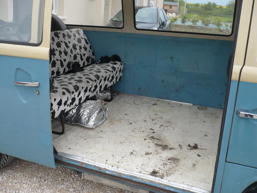 Et l'intérieur est vide. Le sol est très propre, il faudra juste faire des points de soudure dans les trous laissés par les vis de l'ancien proprio... et par lesquels rentre de l'eau quand je roule sous la pluie!