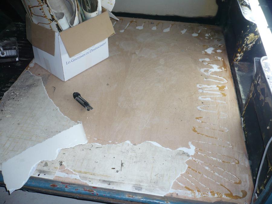 Dépoilage, l'ancien proprio avait mit du lino, du contreplaqué et de l'isolant, qui s'est tout défait avec le temps...