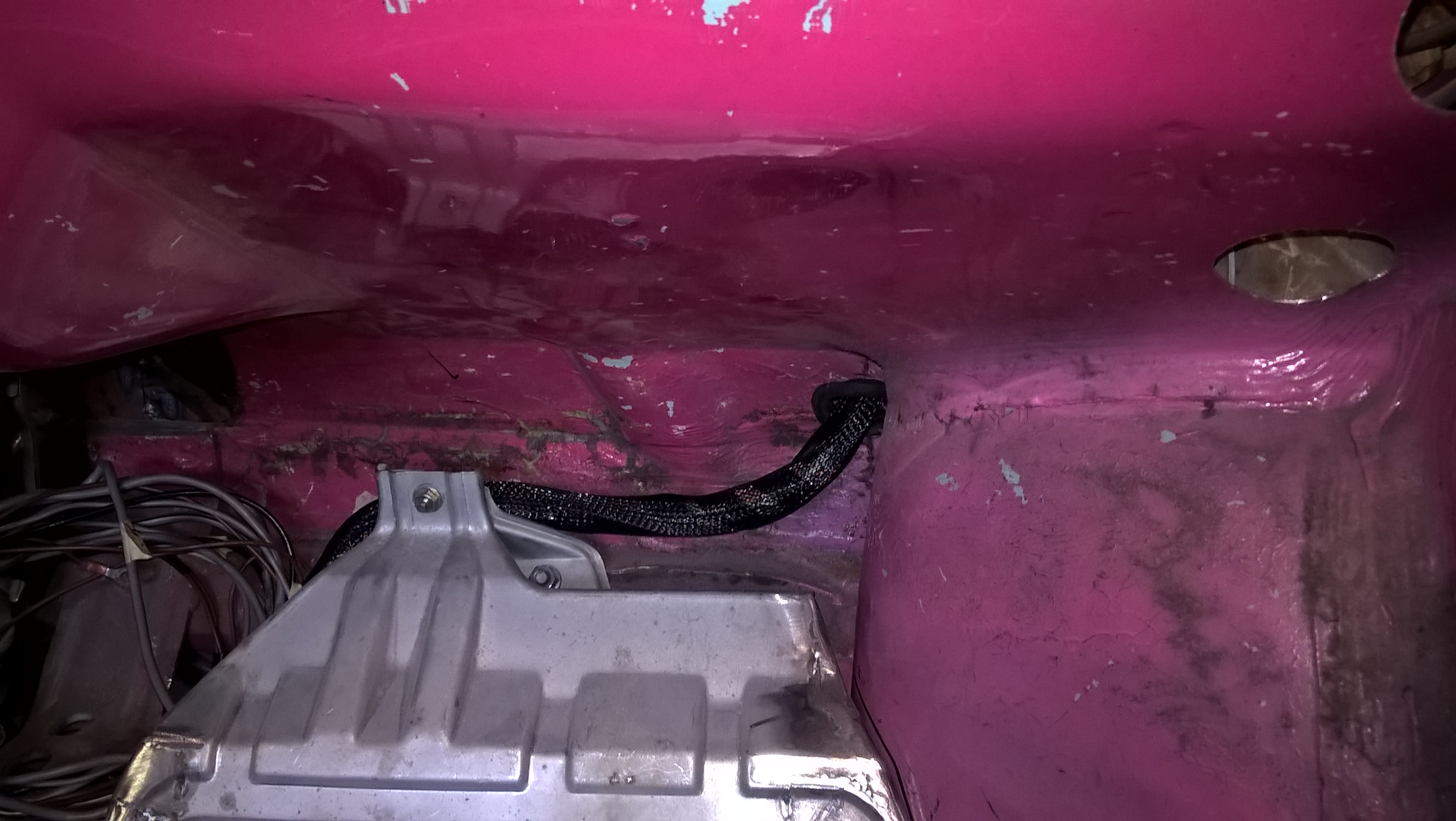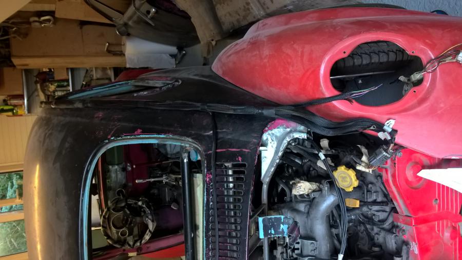 il est protégé par de la gaine tressée helagaine hlb , c'est pas facile à placer mais c'est joli, les fiches sont des deutsch. J'ai crée un support pour la boite à fusibles principale à coté de la batterie, c'est assez propre. Le moteur d'essuie glace est celui de la sub.