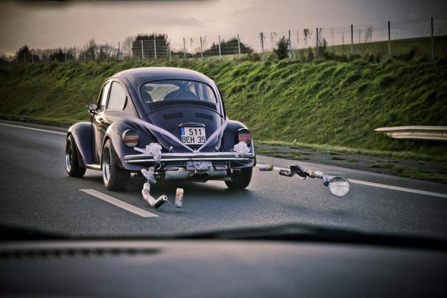 va leur expliquer les cannettes de bières qui trainent derrière... heuuuuu comment dire...