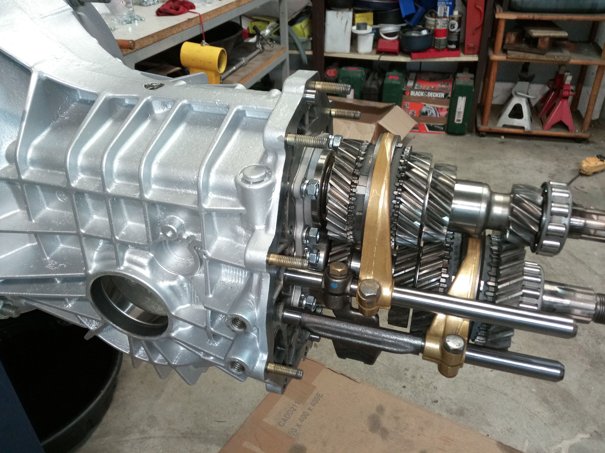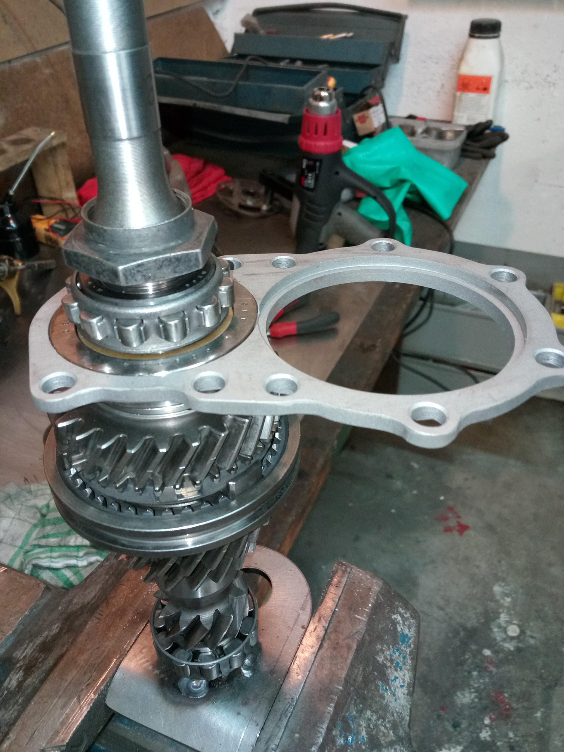- Démontages et remontage des pignons sur les arbres, pour ajouter une plaque sandwich double, plus solide que les 2 séparées d'origine.