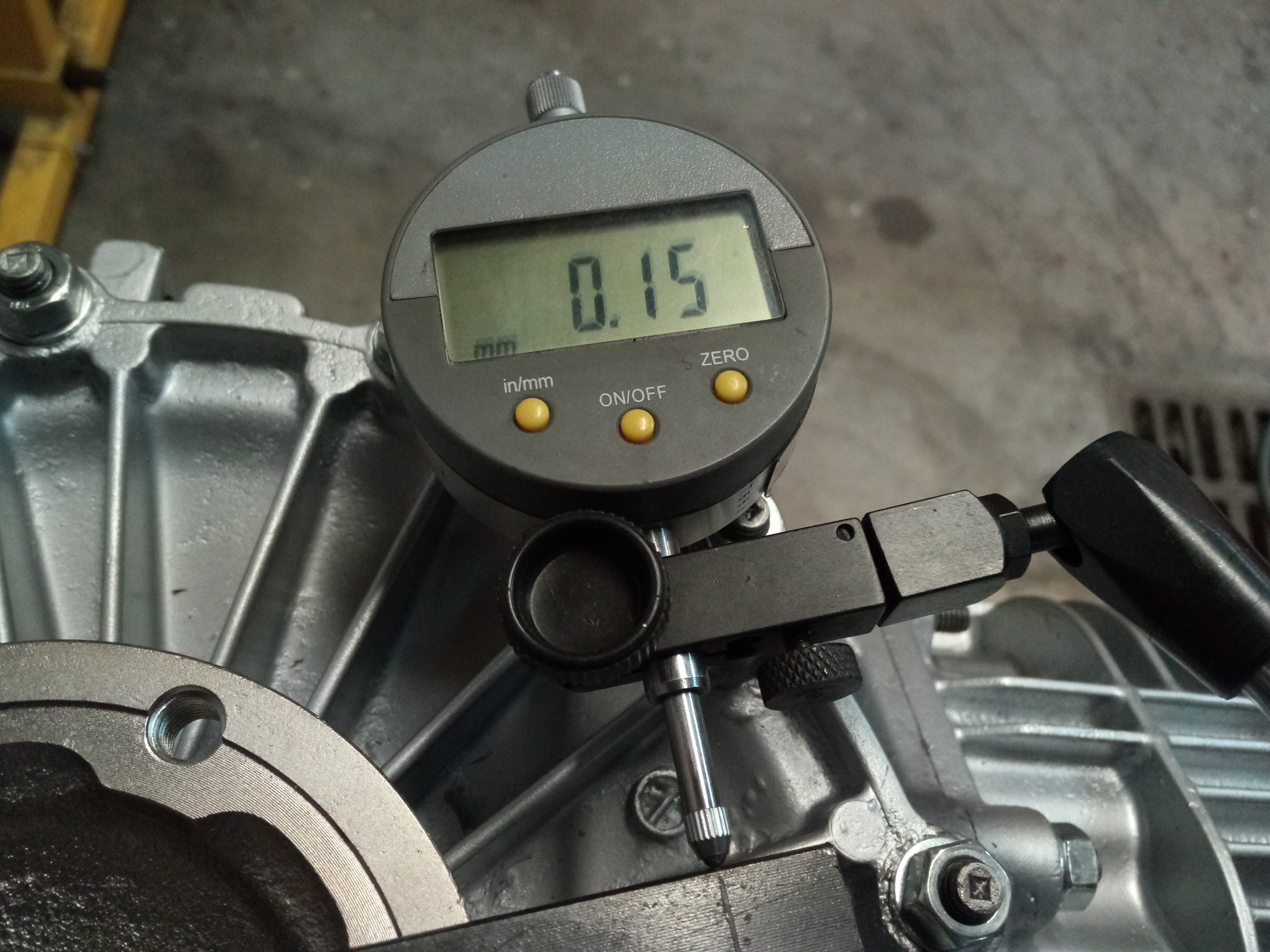 - Réglage du back lash, jeu entre diff et pignon principal. Ecrit d'origine 0.15 sur les pièces, je vous laisse voir sur les images le résultat de notre travail acharné...