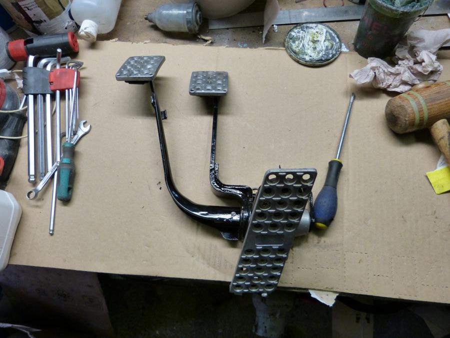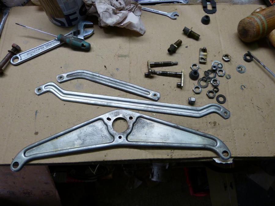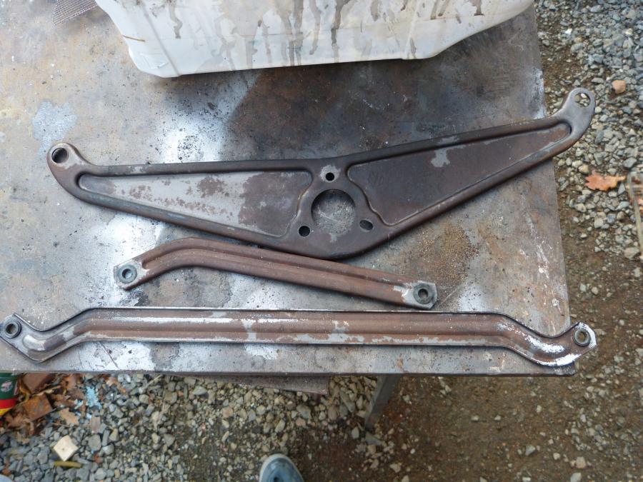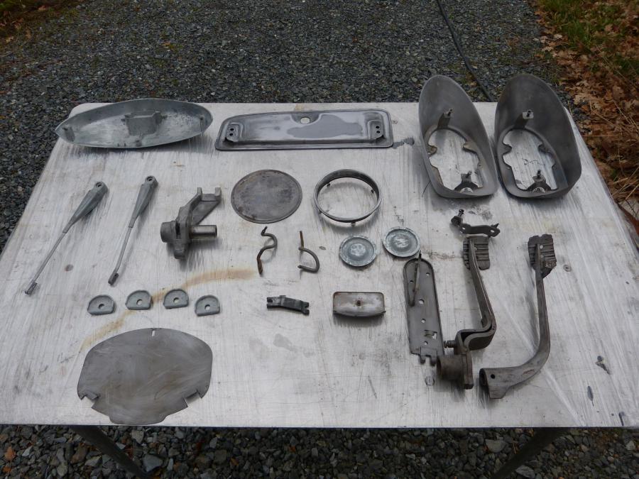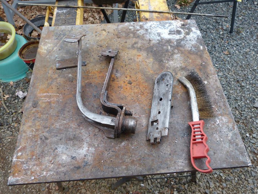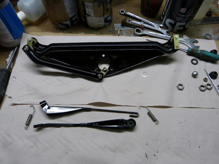 mais je me suis chargé de pleins d'autres trucs. ensuite préparation à la peinture de pleins d'autres trucs pédalier, essuies glaces, repose pied et support de pare chocs remontage du pédalier Mécanisme d'essuie glace