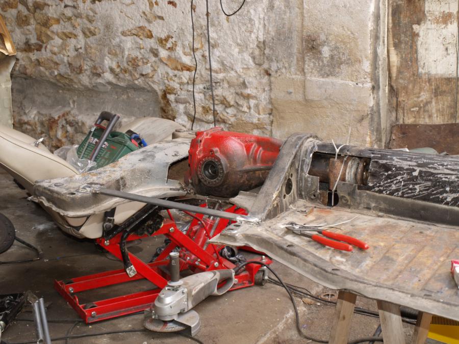 le dépoinage de la tôle sous le châssis a bien avancer logiquement je reçoit le pont de trans et l'arbre cette semaine ...... enfin