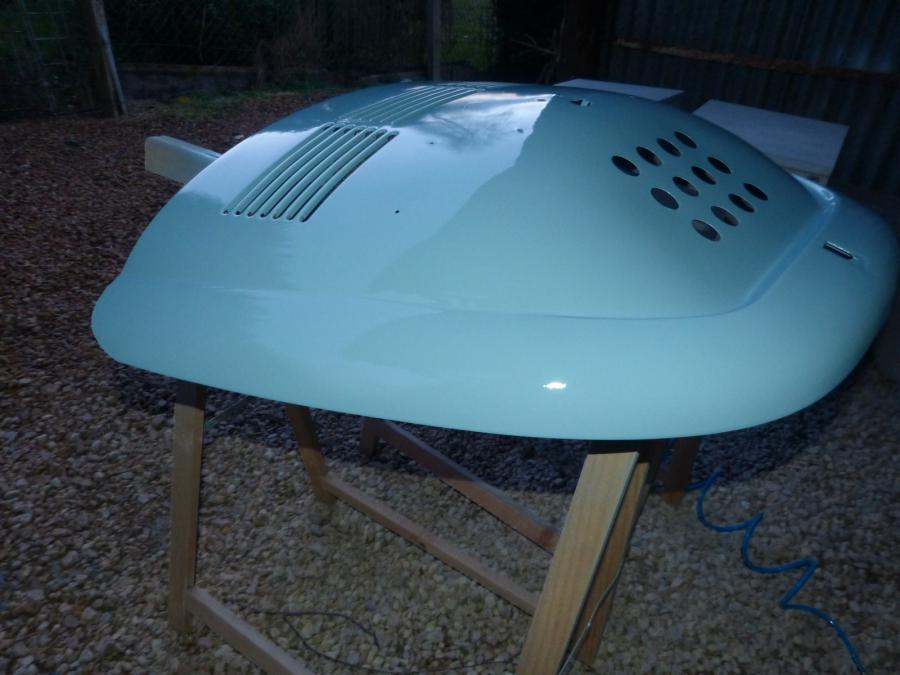 Ponçage du capot arrière et peinture, idem pour les support de capot