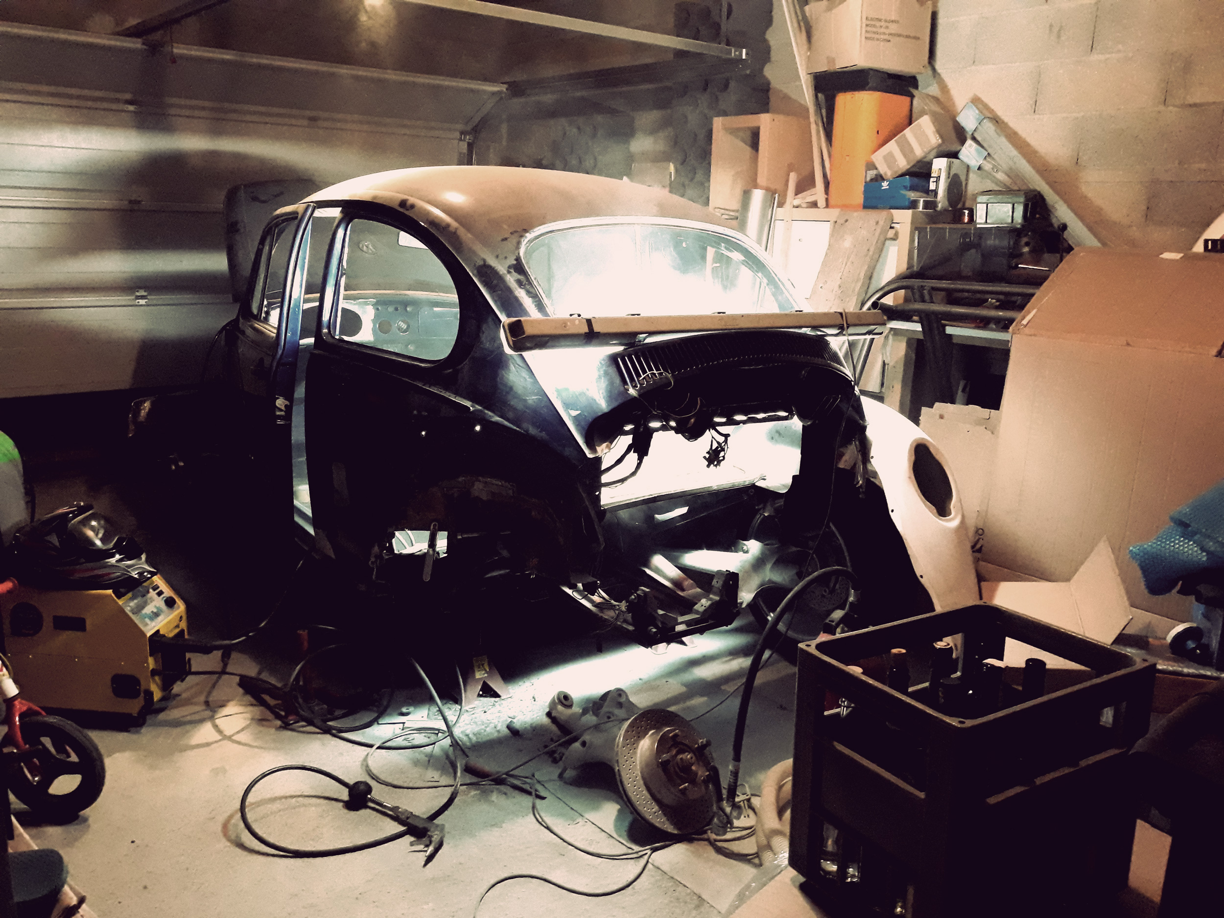 Un peu de soudure de nuit... et j'ai du sortir l'extincteur! la mousse dans le montant arrière avait pris feu