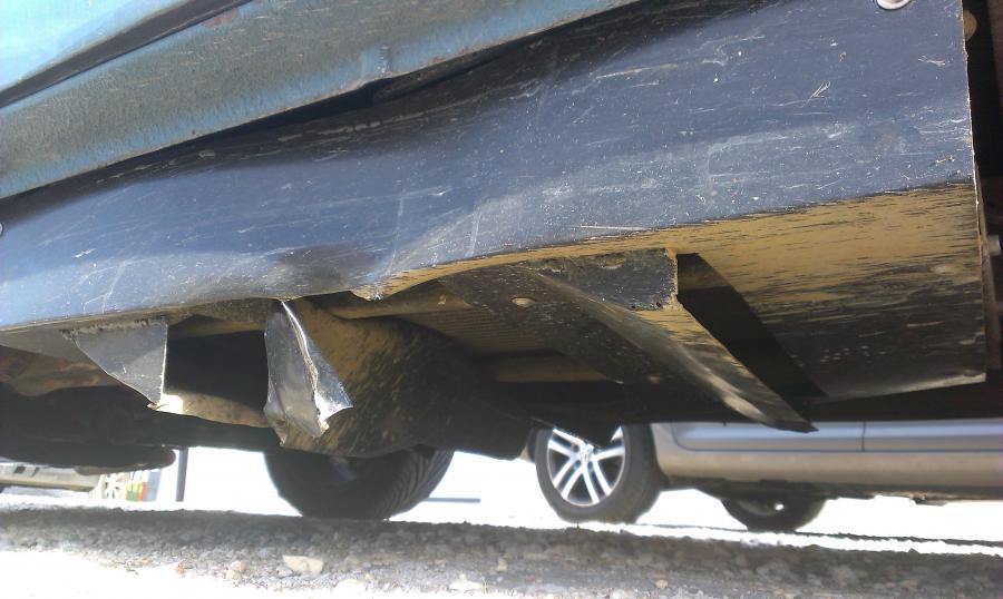 sur un parking en travaux, a 5km/h, une plaque d'acier qu'ils mettent pour passer les tranchees...