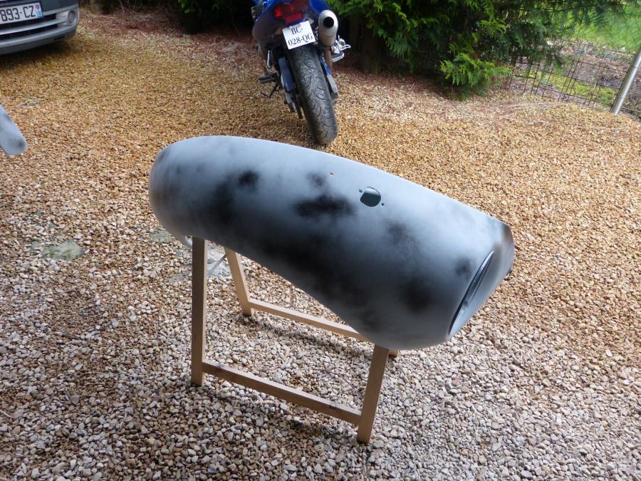 le premier mélange est pas assez dilué donc la peinture se tend mal, je refais une quantité un peu plus dilué, par contre j'ai un sérieux problème a trop chargé, du coup j'ai pas put éviter de faire des coulures. Ca me fout un peu les boules mais je rattraperais ça avec un ponçage fin.