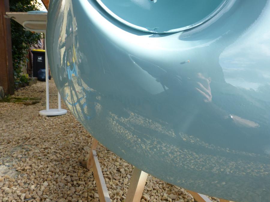 je pose un guide de ponçage après quelques jours de ponçage j'arrive à ça puis viens le temps de la peinture
