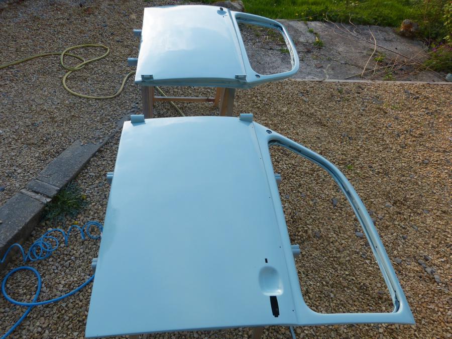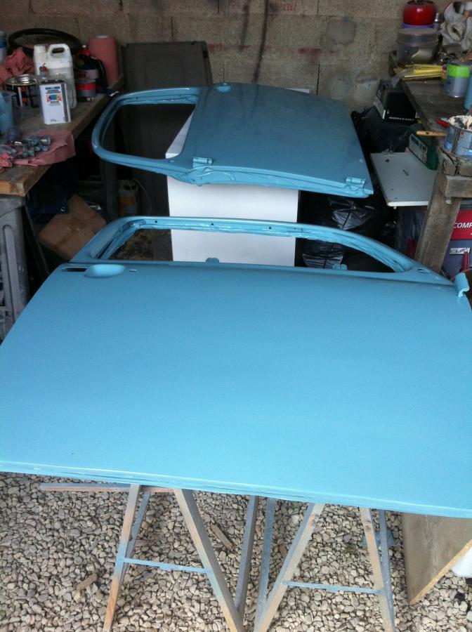 peindre les porte à plat, c'est très bien pour le tendu de la peinture, par contre c'est sur que toutes les poussière ce dépose dessus. de plus les porte seront plus tendu que le flanc de la coque qui lui a été peint à la verticale.