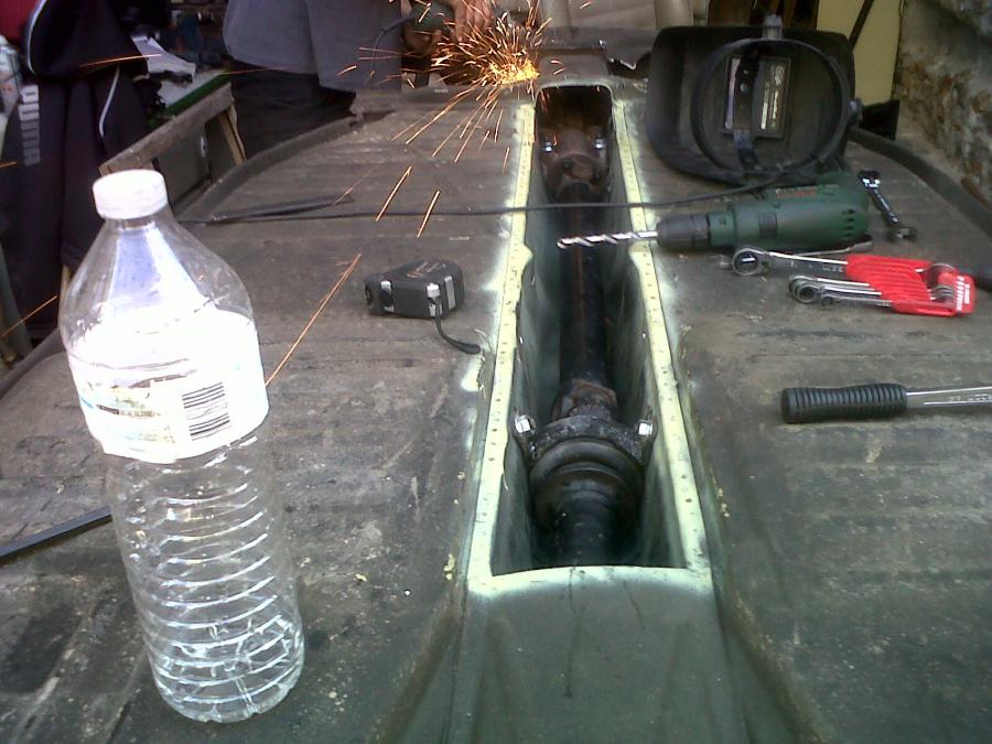 c'etais chaud ... mais ce matin a 10h j'ai enfin reçut l'arbre donc.... plantage et très bonne surprise je n'ai même pas a le recouper.. je vais reculer le moteur de 23mm et l'arbre passe ;)