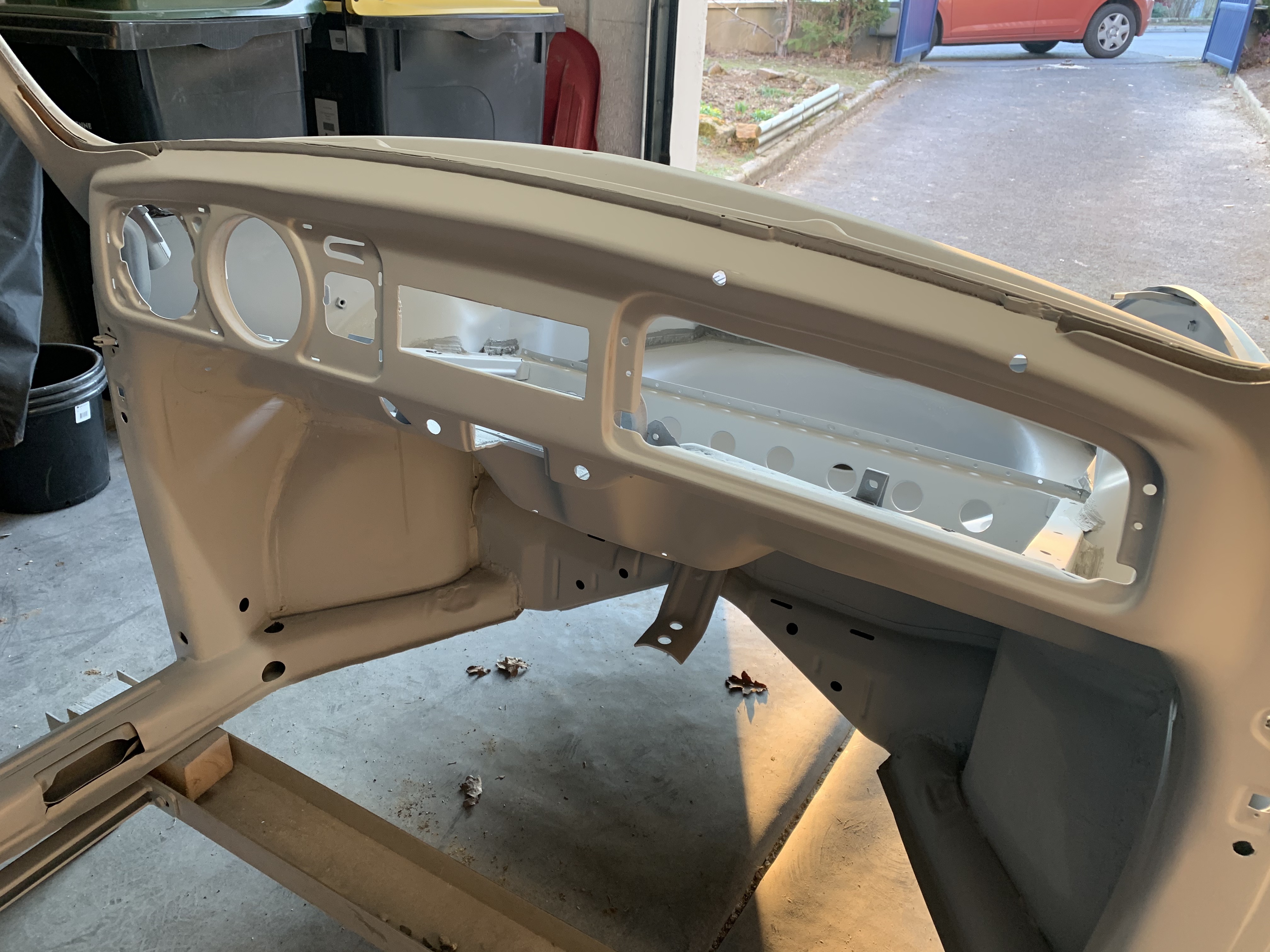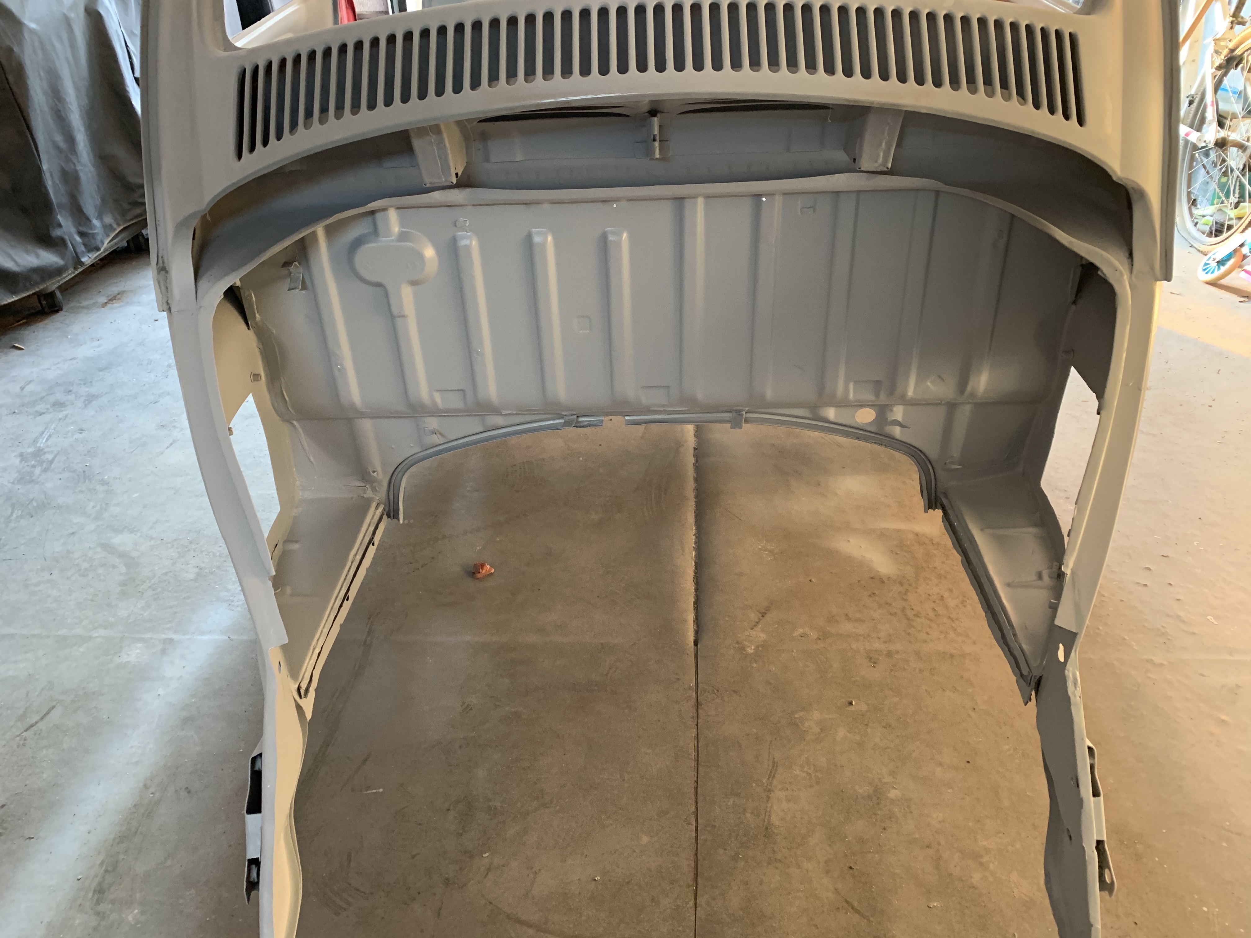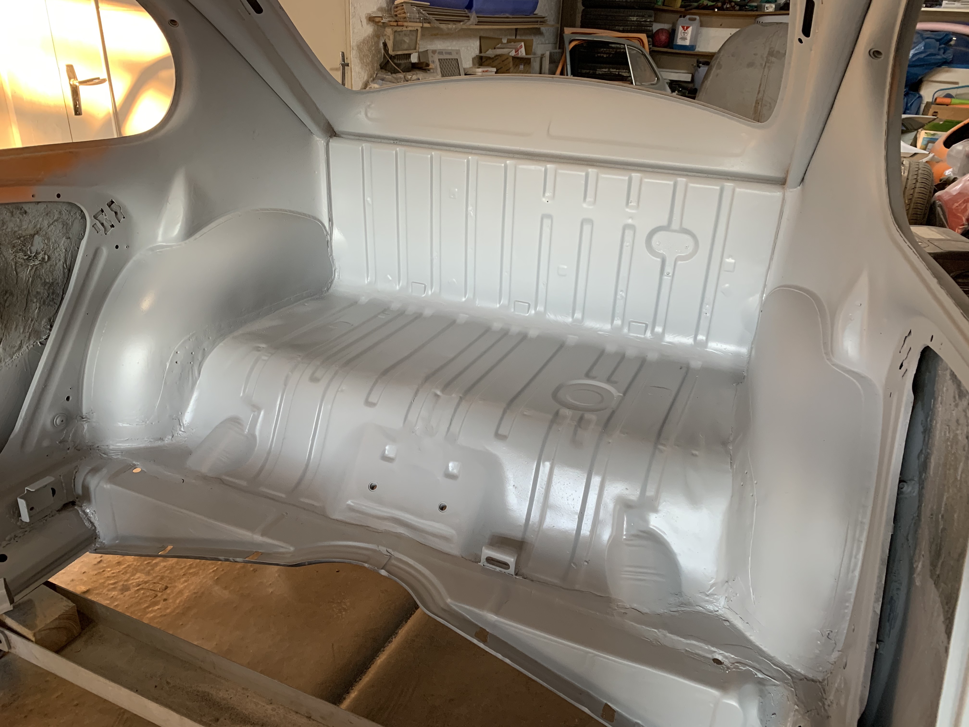 le coffre avant est quasi terminé, il me reste la tôle verticale au dessus de la roue de secours a refaire, et les 2 petites équerres qui tiennent les vérins de capot,
