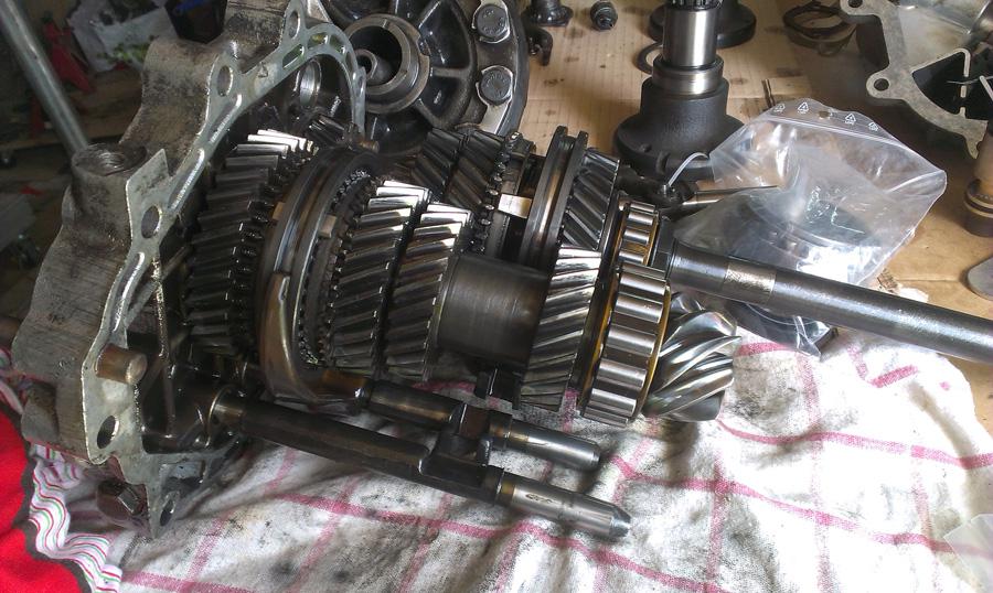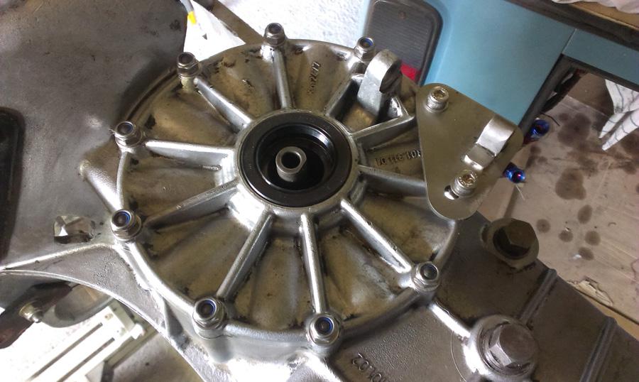 - remontage de la pignonnerie de 1ere avec la dent de loup neuve. - nettoyage de la tripaille intérieure - installation du joint de carter - on glisse le tout sans fixer la tige de commande - un petit check d'alignement - et on pousse... - je bloque la partie intermédiaire et je teste. Elle passent toutes. - roulements neufs installés sur le diff - le diff dans son emplacement - le joint... - et le couvercle avec visserie inox. J'en profite pour remplacer les goujons de la plaque d'embrayage par des vis CHC. - fini pour aujourd'hui! Il me reste :