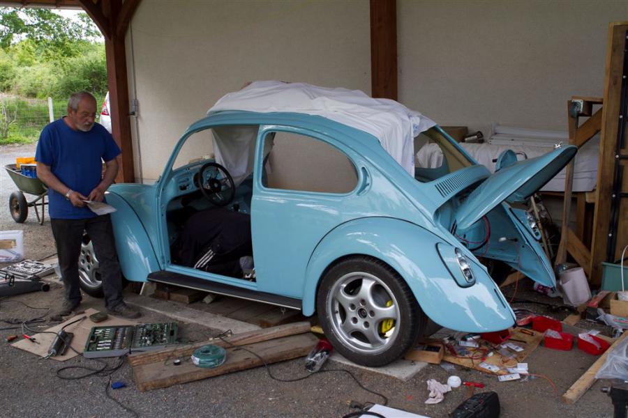 La coque se remonte petit a petit je fini de mettre les portières ce soir, l électricité est finie il me reste que le plafonnier a câbler, la jauge a carburant et le moteur. Demain matin si j ai le temps et le courage je jette le moteur sur la boîte :-)